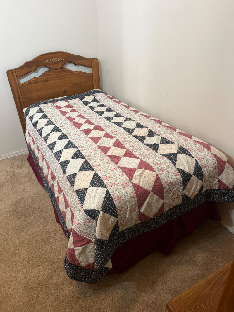 Lot # 104 - Single Bed with Sold Wood Headboard & Handmade Old Fashioned Quilt Starting Bid: $ 5.00 Bids: This sale will end in: |