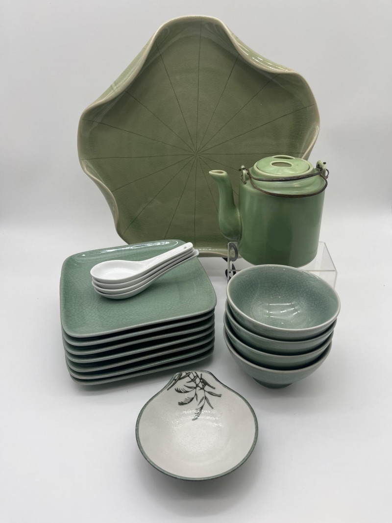 Lot # 86 - Assorted Celadon Ceramic Dishes and Teapot Lot Starting Bid: $ 5.00 Bids: This sale will end in: |