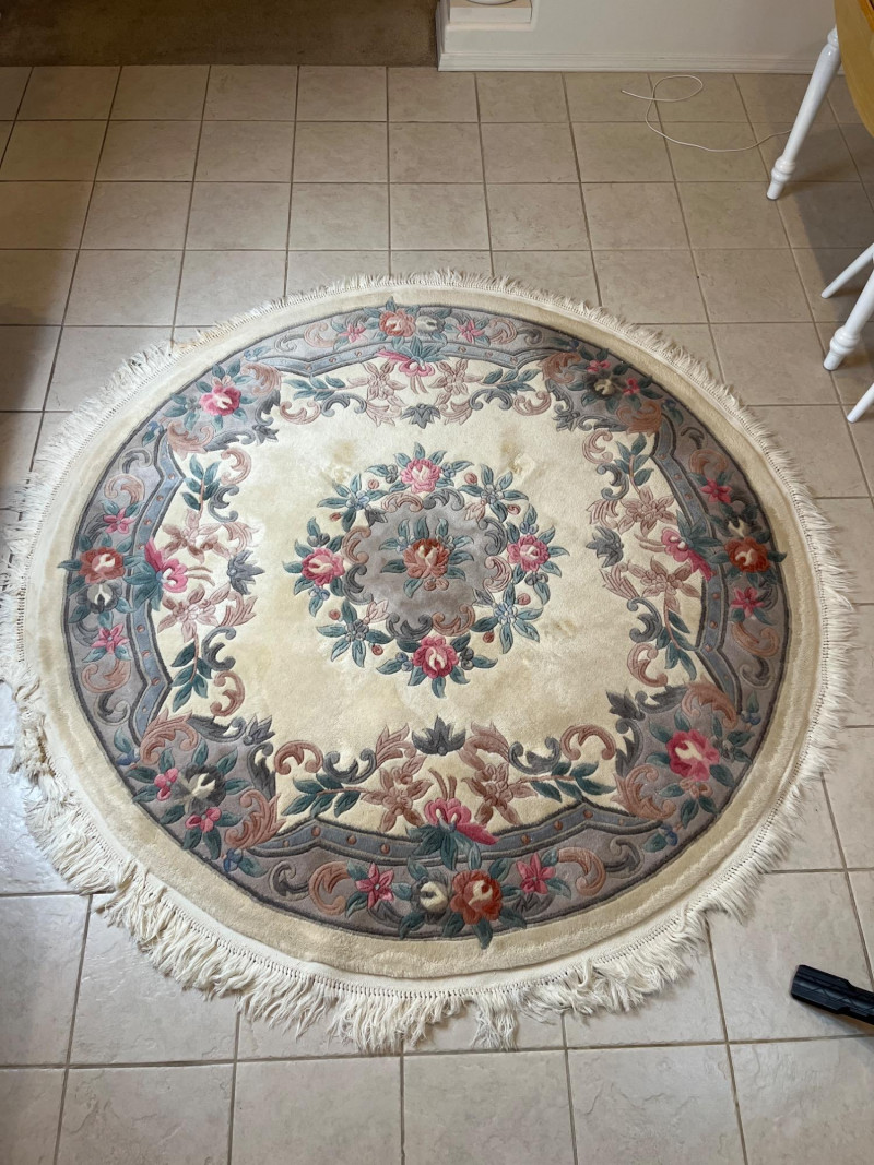 Lot # 113 - Round Floral Fringed Rug Starting Bid: $ 5.00 Bids: This sale will end in: |