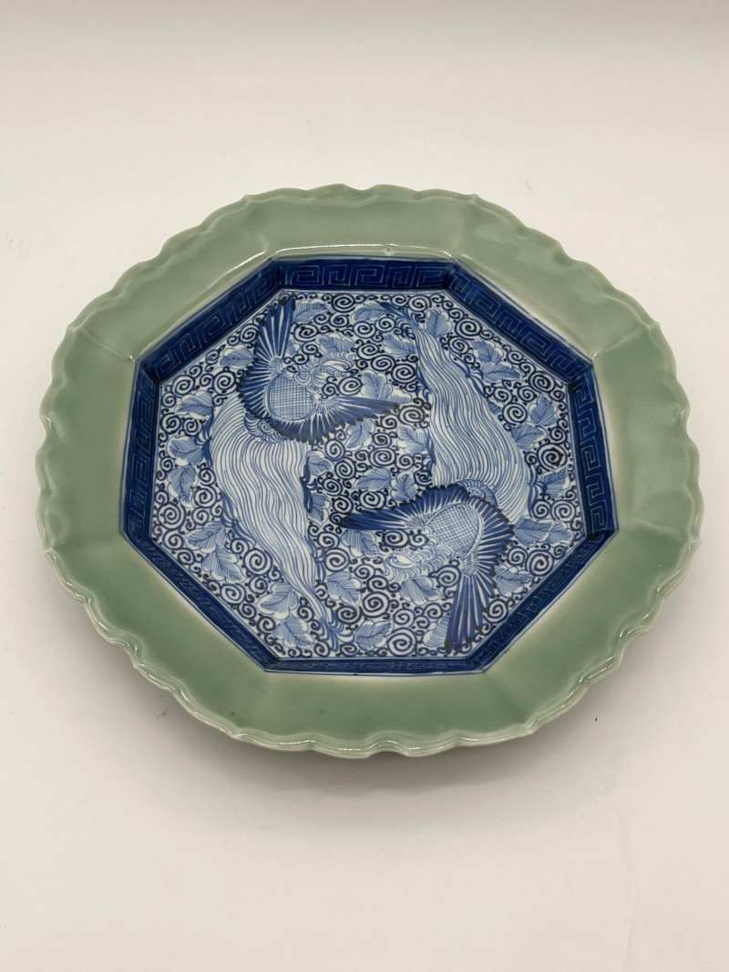 Lot # 11 - Antique Hand Painted Celadon Shallow Dish / Plate Starting Bid: $ 5.00 Bids: This sale will end in: |