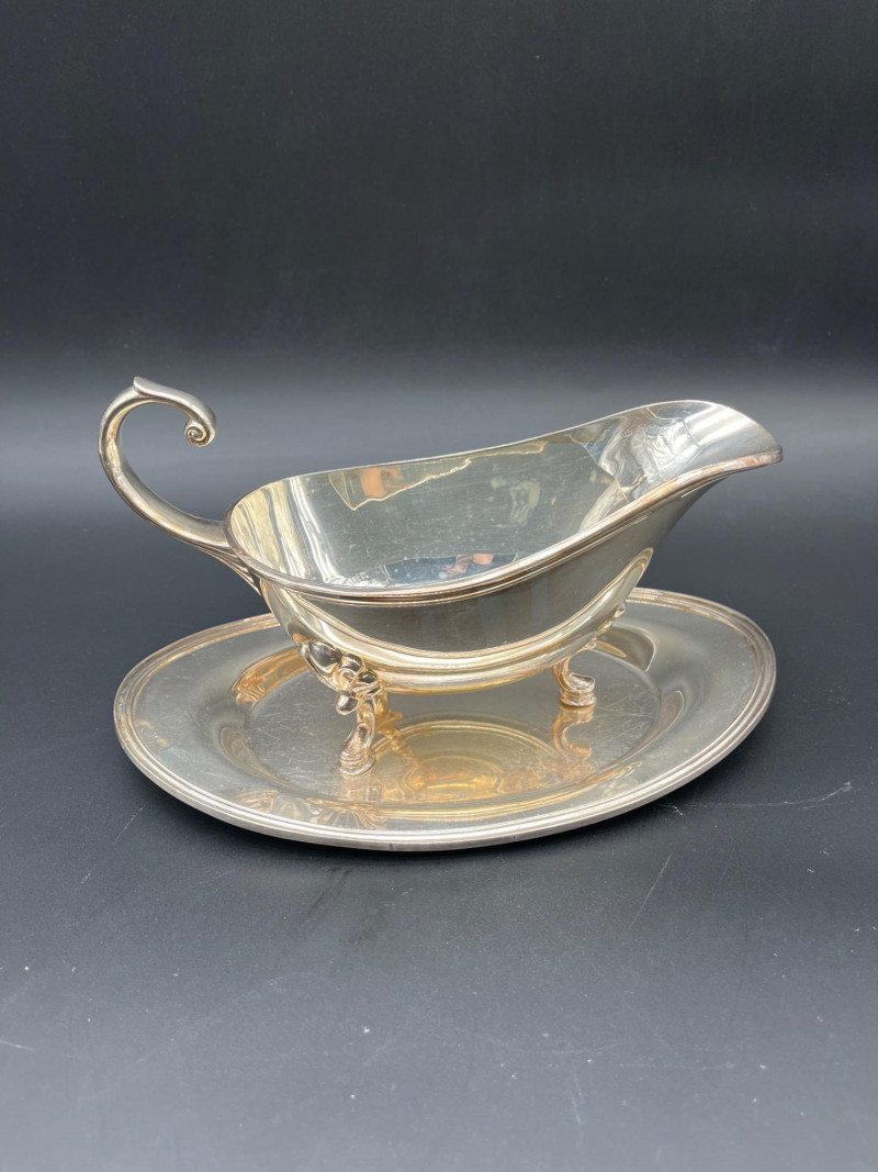 Lot # 49 - Crescent Silver Co Silver Plate Gravy Boat with Under Plate Starting Bid: $ 5.00 Bids: This sale will end in: |