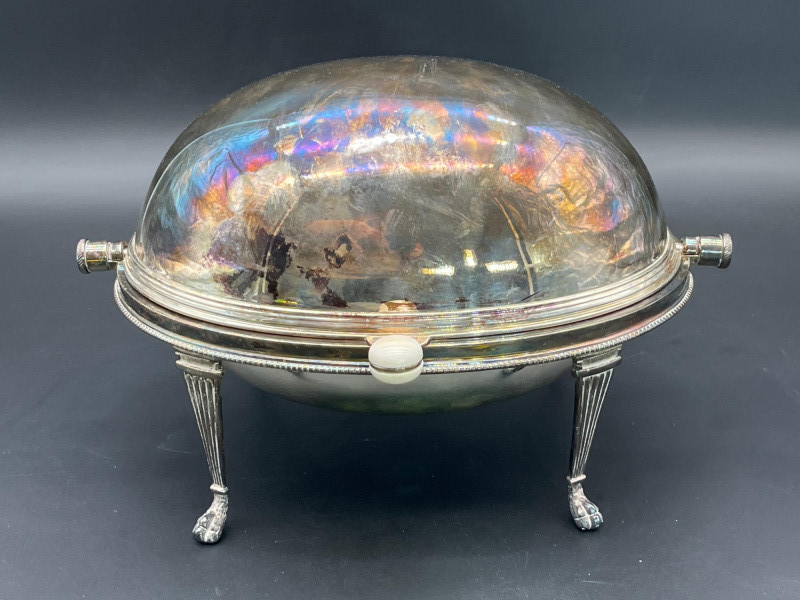 Lot # 37 - William Hutton & Sons Silver Plate Roll Top Server with Tray Insert Starting Bid: $ 5.00 Bids: This sale will end in: |