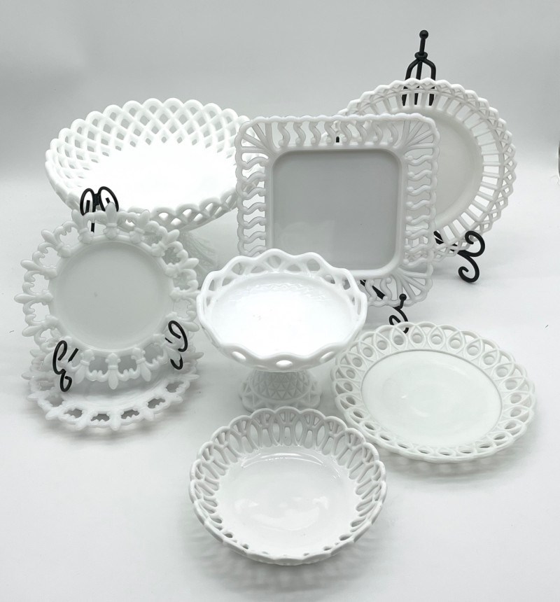 Lot # 82 - Fenton Hobnail Milk Glass Lot Starting Bid: $ 5.00 Bids: Bidding starts in: |