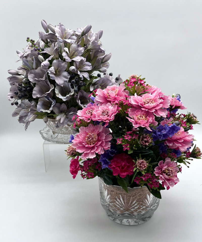 Lot # 20 - Pink Floral Arrangements in Glass Bowl & Basket READ DESCRIPTION Starting Bid: $ 5.00 Bids: Bidding starts in: |