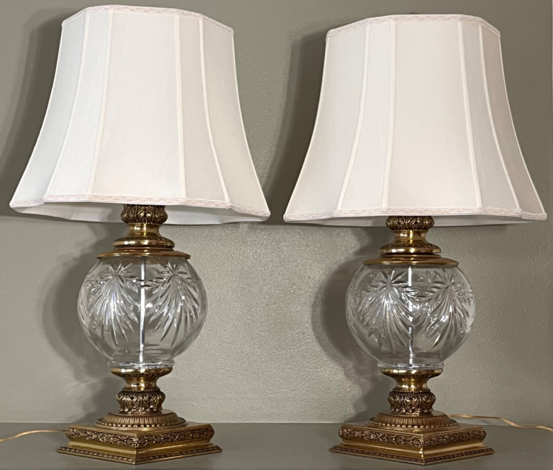 Lot # 45 - Two French Neoclassical Styled Glass & Brass Lamps w/ Crystal Finials Starting Bid: $ 5.00 Bids: Bidding starts in: |