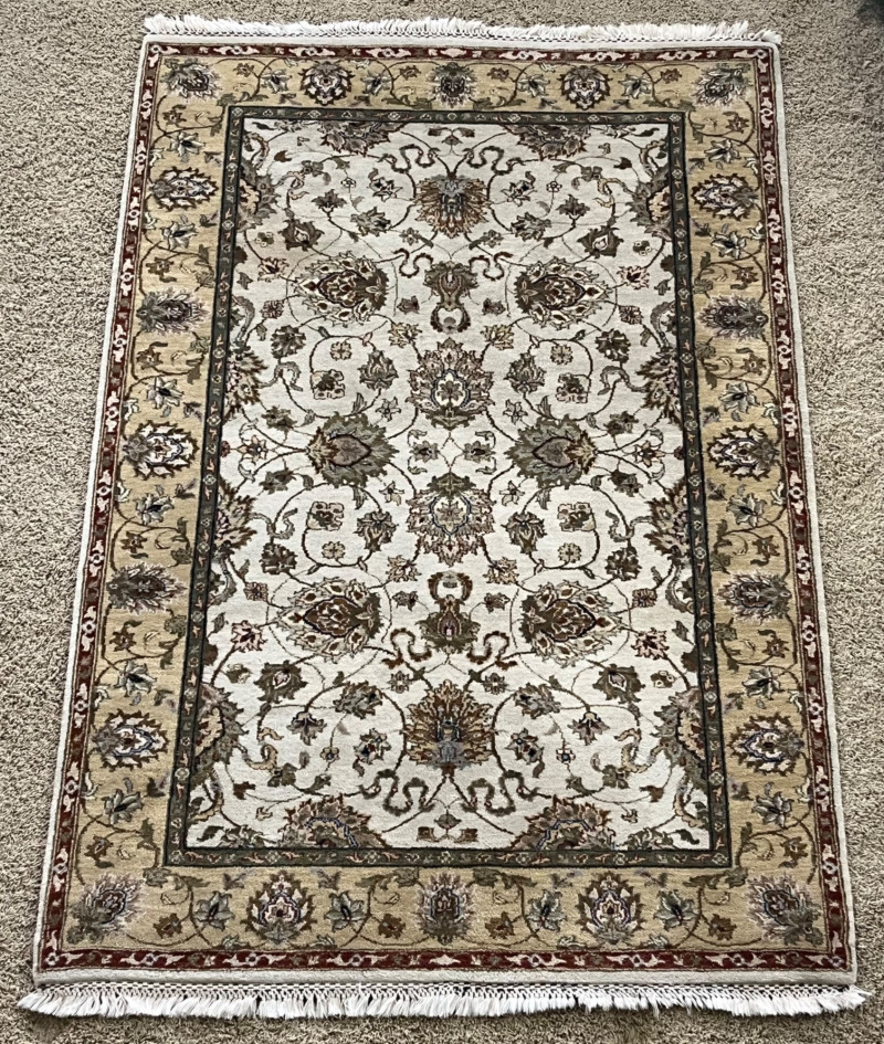 Lot # 202 - 4’ x 5’10” Hand Knotted Floral Rug with Pad Starting Bid: $ 5.00 Bids: Bidding starts in: |