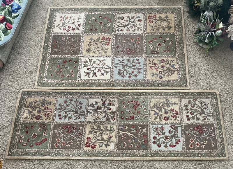 Lot # 167 - Hand Made Wool 2'6" x 7'6" Runner with Matching 4" x 6" Rugs Starting Bid: $ 5.00 Bids: Bidding starts in: |