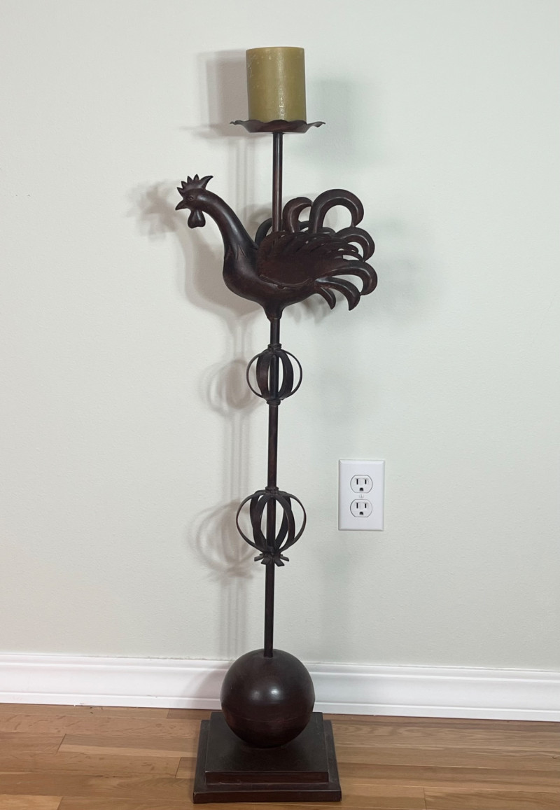 Lot # 121 - Rustic Styled Rooster Candle Holder Starting Bid: $ 5.00 Bids: Bidding starts in: |