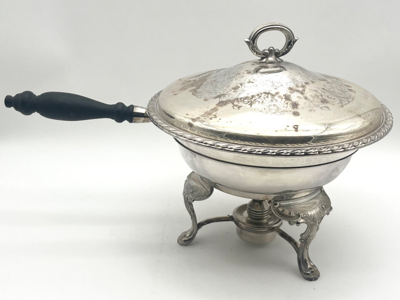 Lot # 171 - Oneida Silver Plate Chafing Dish with Burner Starting Bid: $ 5.00 Bids: Bidding starts in: |