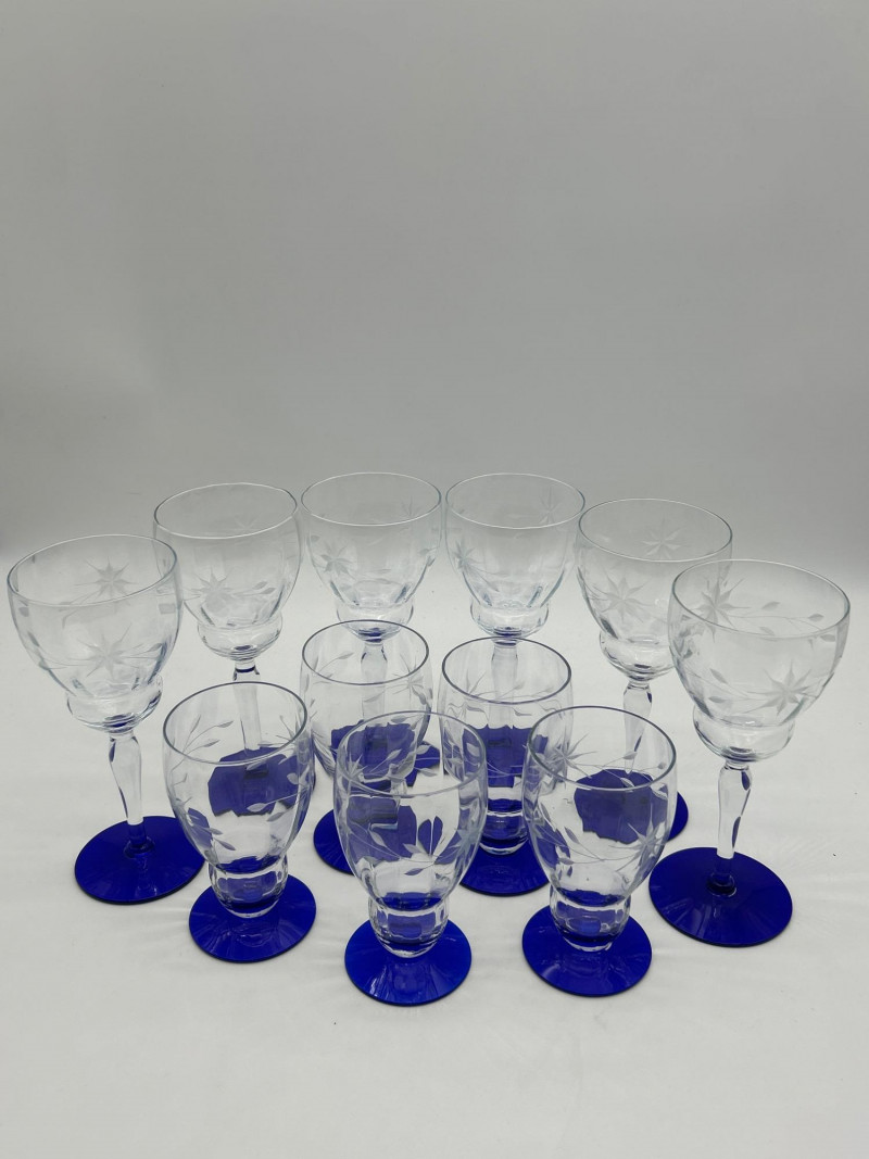 Lot # 160 - Set of 11 Weston Glass Blue Footed Water Goblets and Iced Tea Glasses Starting Bid: $ 5.00 Bids: Bidding starts in: |