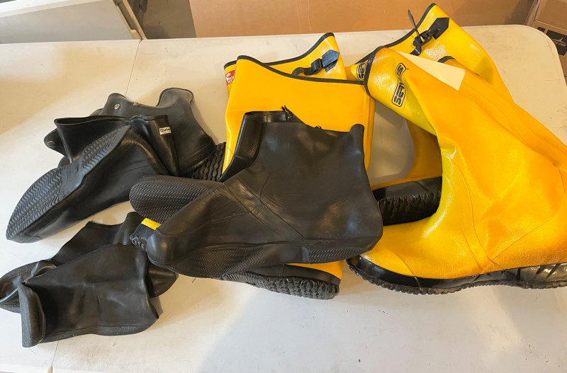 Lot # 194 - New Rain boots and Rubber Shoe Covers Starting Bid: $ 5.00 Bids: Bidding starts in: |