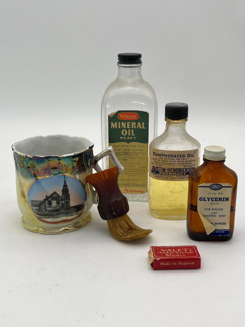 Lot # 104 - Vintage Medicine Cabinet Items and Antique Shaving Mug Starting Bid: $ 5.00 Bids: This sale will end in: |