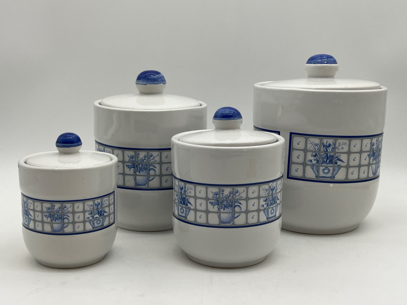 Lot # 99 - 1980's Era Ceramic Kitchen Canisters with Lids Starting Bid: $ 5.00 Bids: This sale will end in: |