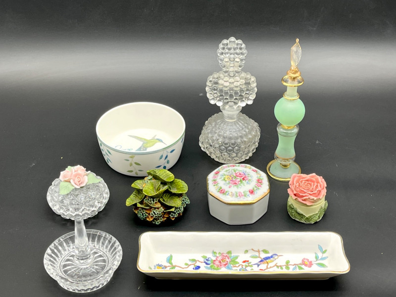 Lot # 119 - Vintage Trinkets Lot Featuring Two Perfume Bottles Starting Bid: $ 5.00 Bids: This sale will end in: |