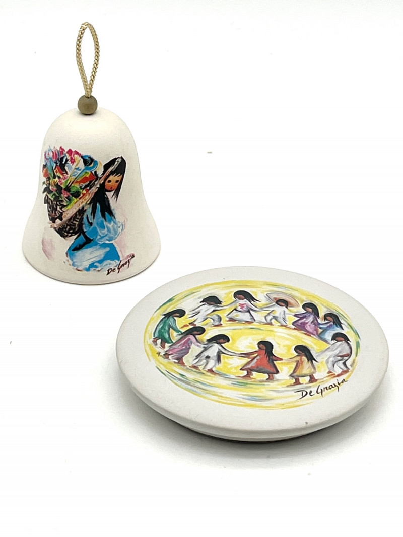 Lot # 138 - DeGrazia Hand Painted Bell and Coaster Starting Bid: $ 5.00 Bids: This sale will end in: |