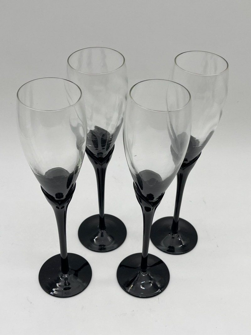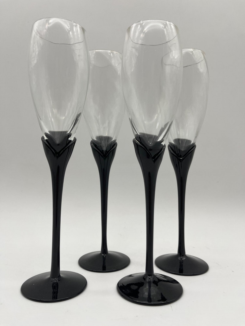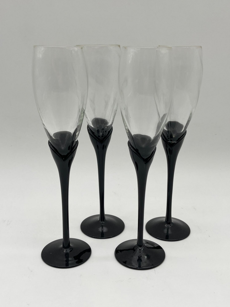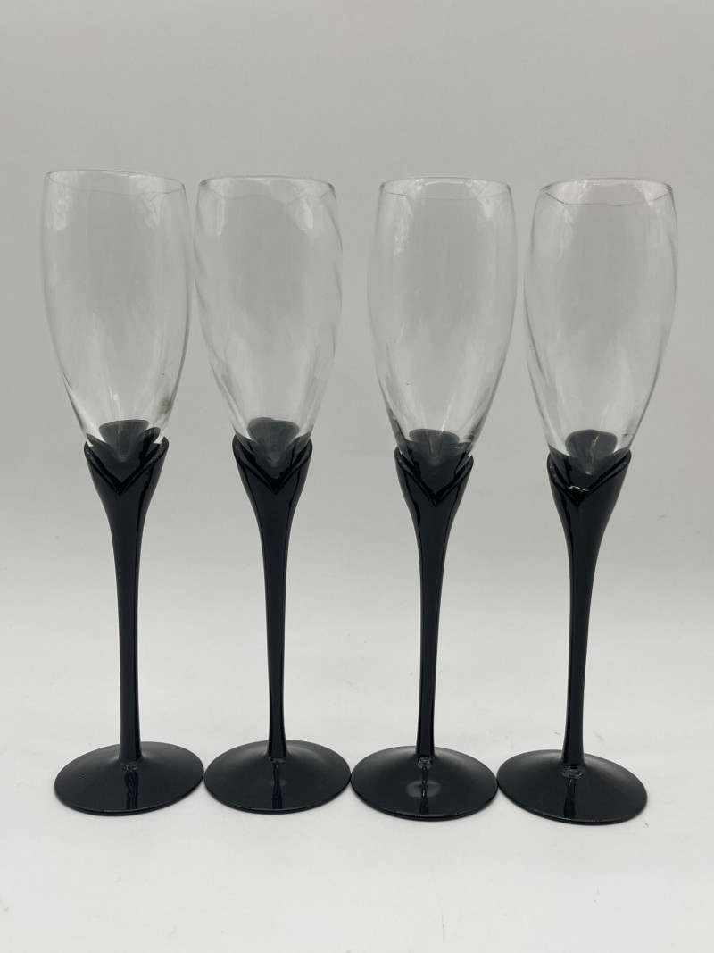Lot # 18 - Set of 4 Colony Glass Amaryllis Black Stem Champagne Glasses