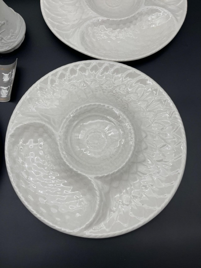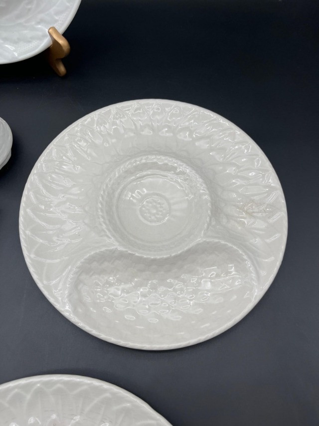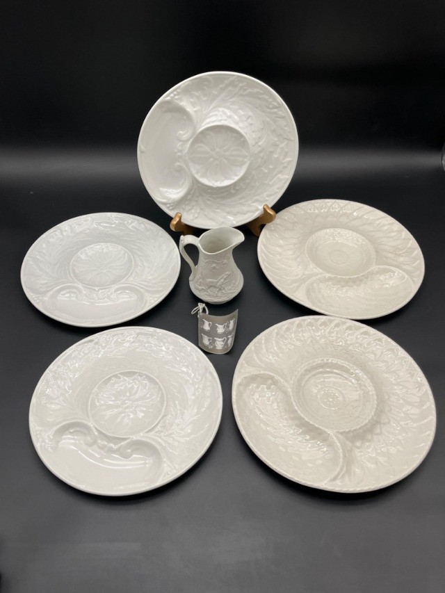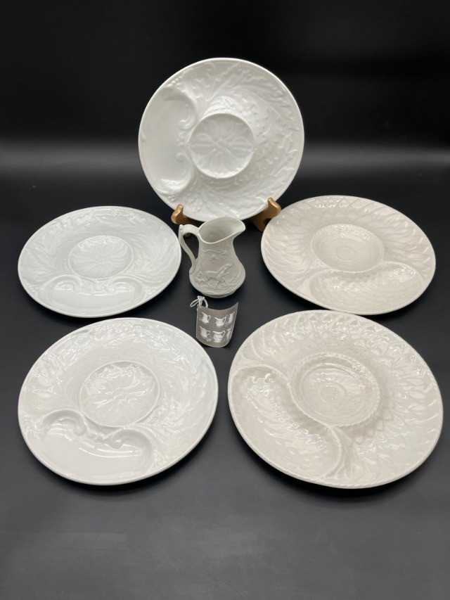 Lot # 44 - 5 White Artichoke Plates by Gien & Secla and Small Portmerion Pitcher