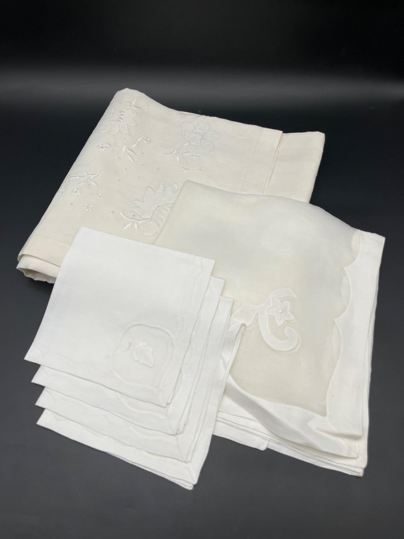 Vintage Hand Embroidered White Portuguese Table Linens This elegant collection includes: