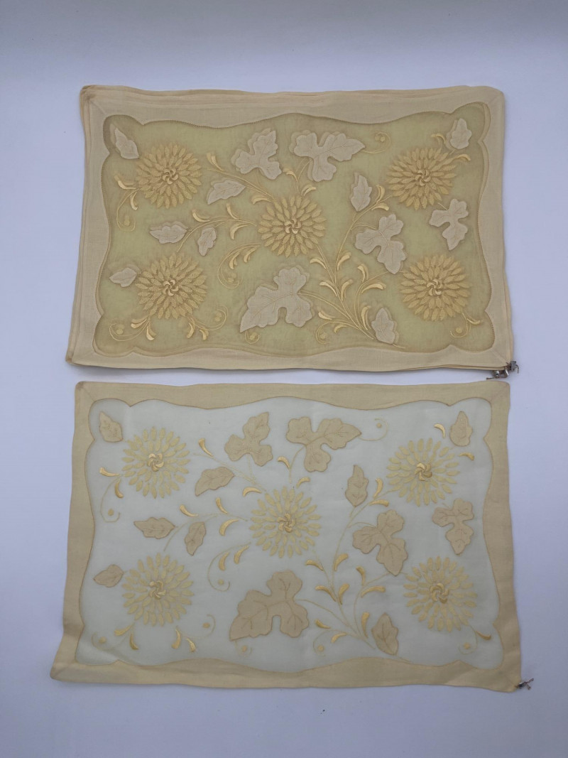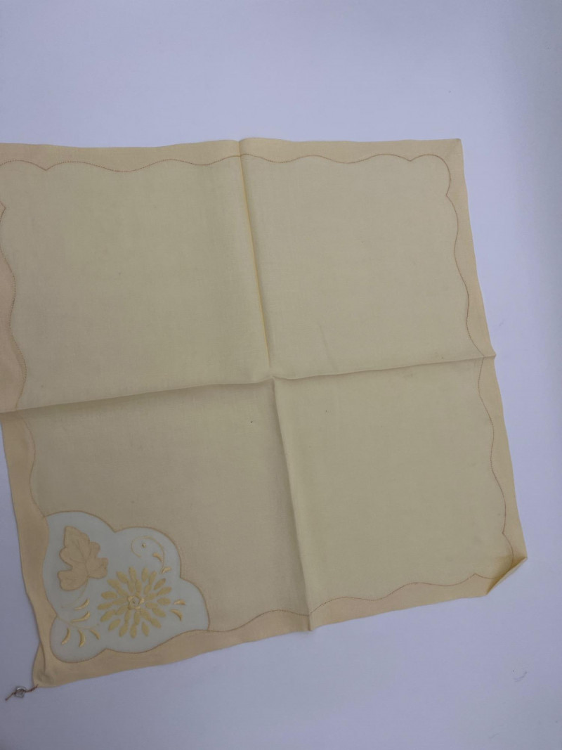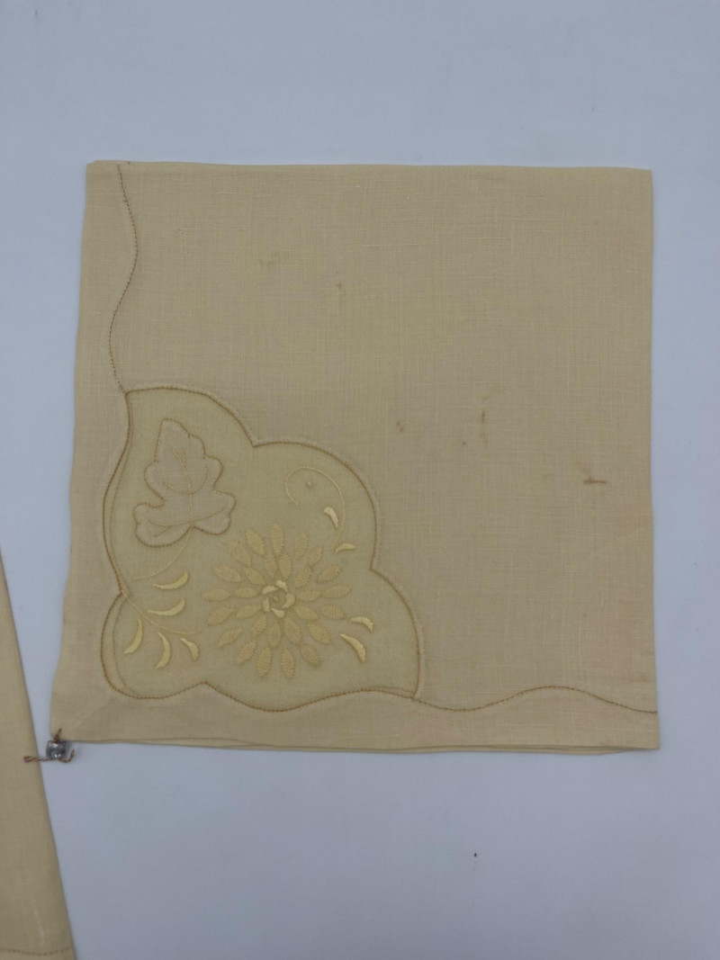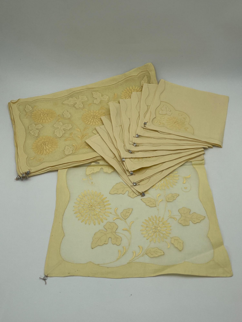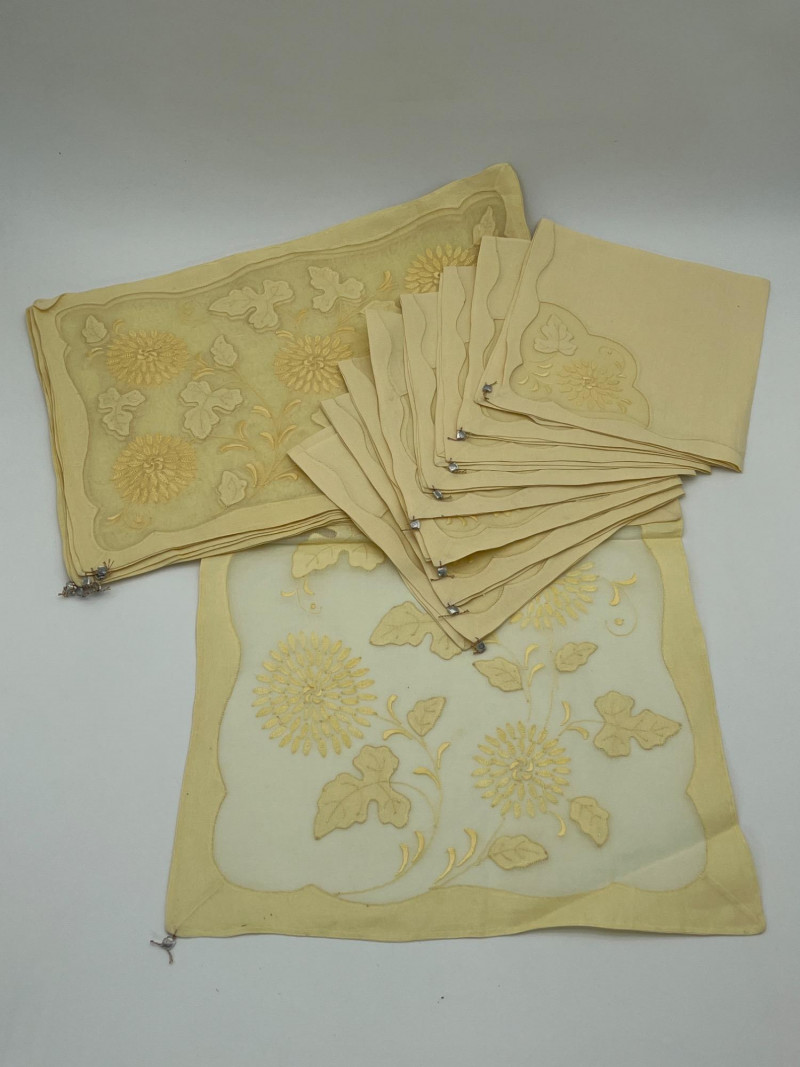Lot # 51 - Vintage Hand Embroidered Yellow Table Linens