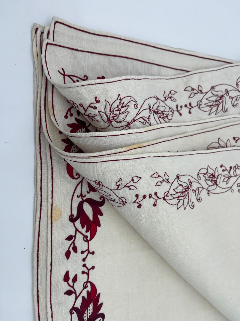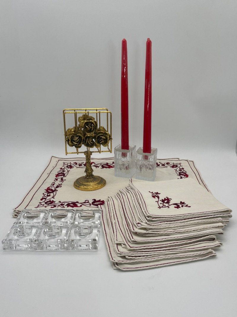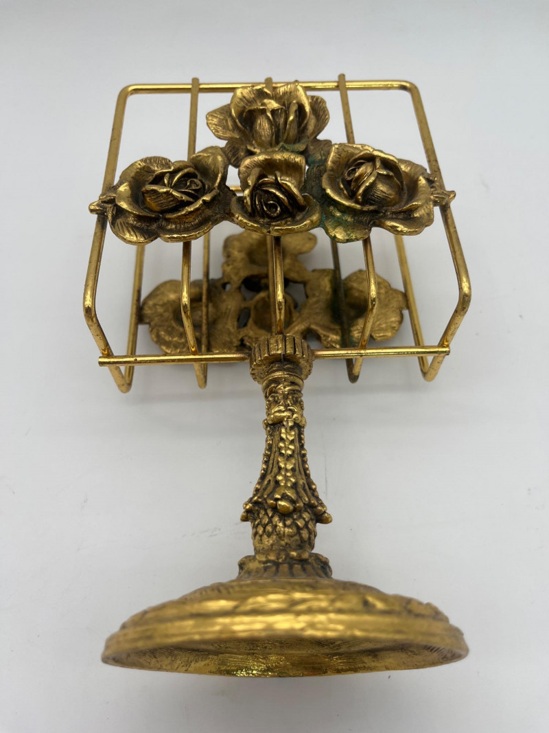 Hand Embroidered Linen and Ormolu Napkin Holder Lot This lot includes: