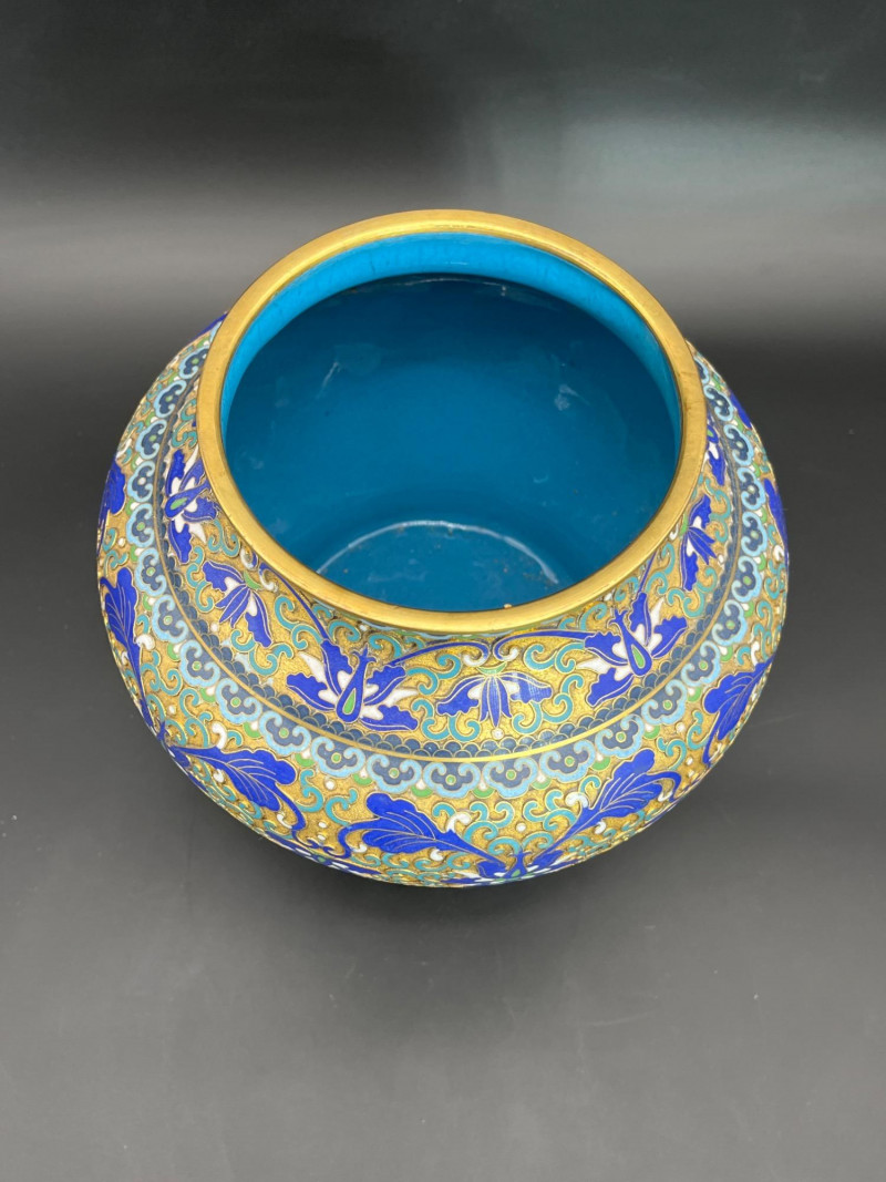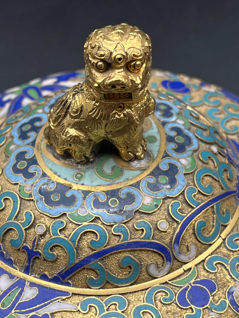 Lot # 56 - Chinese Cloisonné Jar with Lid and Foo Dog Finial