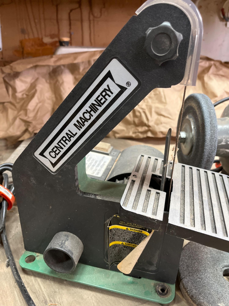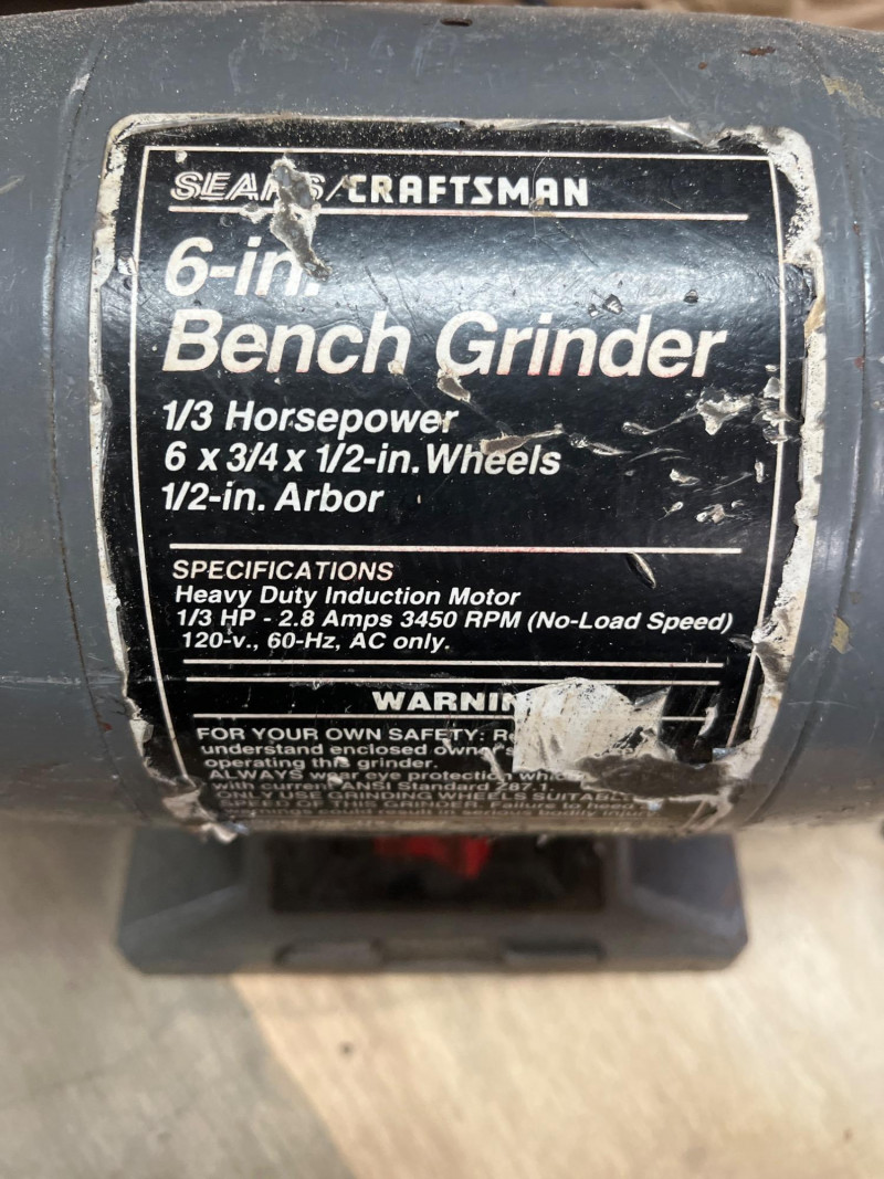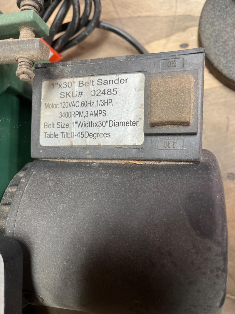 Craftsman Bench Grinder and Central Machinery Belt Sander Both look to be in good condition but are untested. The belt sander comes with extra sanding belts and the grinder extra stone and brush.