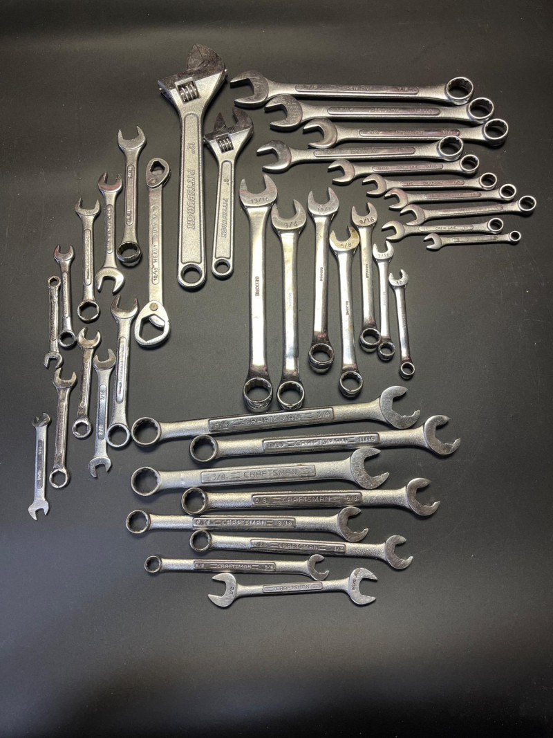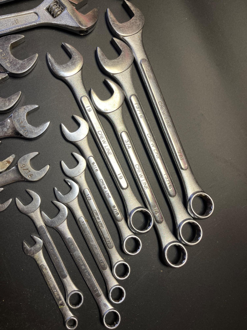 Variety of Crescent and Combo Wrenches from Multiple Manufacturers Manufacturers include Pittsburgh, Crew Line, Craftsman, and unknown brand drop forged. Most are smaller sizes, see photos for specifics.