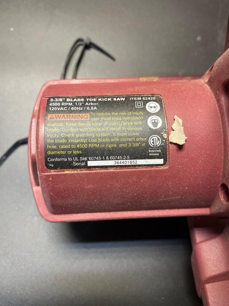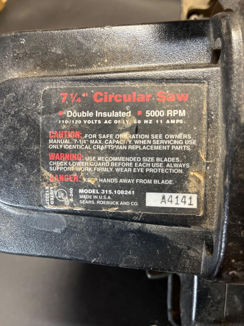 Chicago Electric Toe Kick Saw and Craftsman Circular Saw Both saws power on but have not been tested.