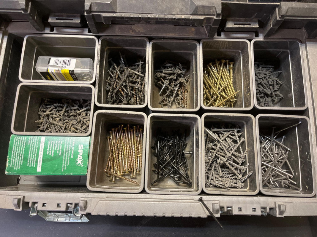 Lot # 40 - Husky Tool Box Full of New Nails and Screws of Various Sizes