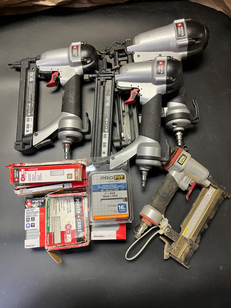 Porter Cable and Central Machinery Pneumatic Brad and Pin Nailers These are untested because I do not have experience with this type of equipment. All look to be in good, well maintained condition.