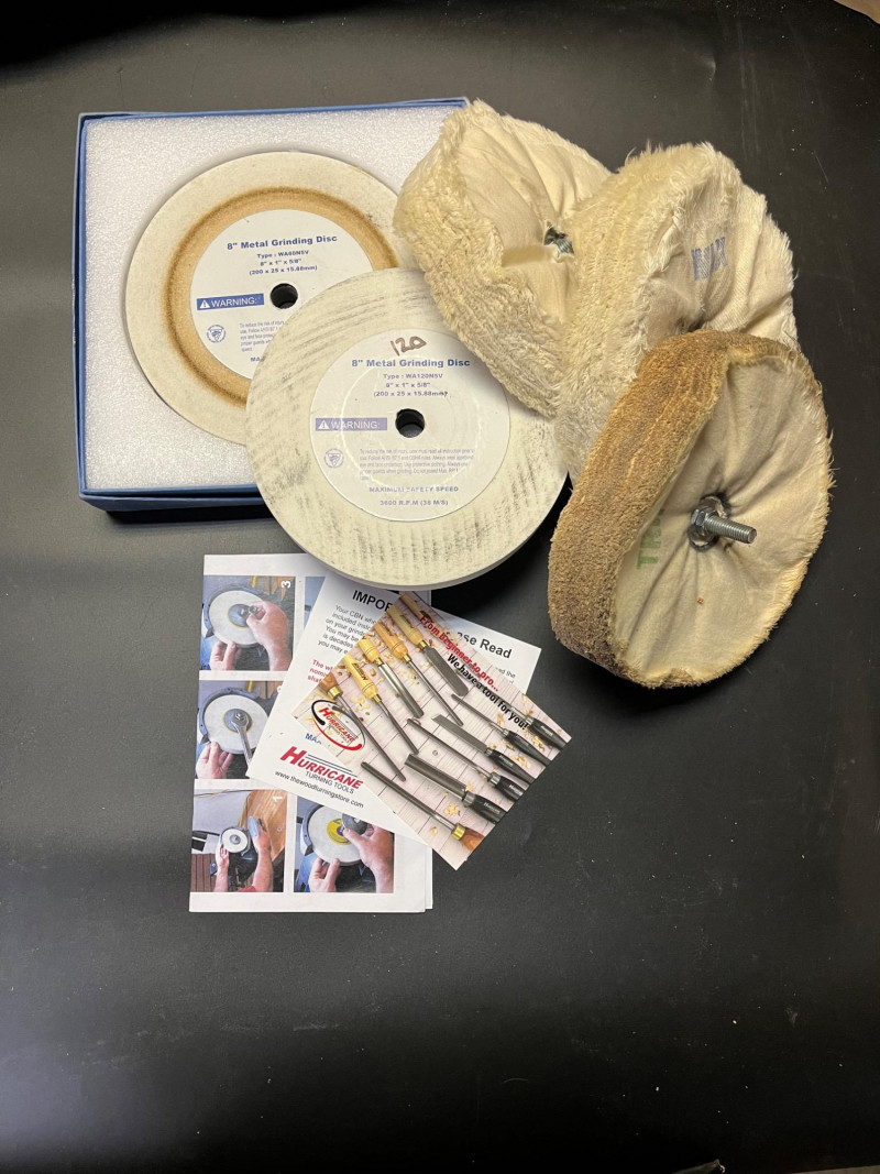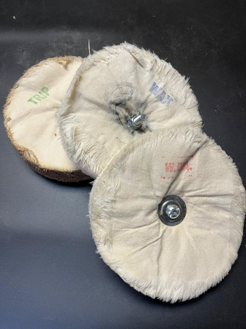 Lathe Grinder and Buffer Attachment Lot This lot includes two metal grinding stones and a set of three various buffing wheels. I believe all of these items are gently used but in good condition.