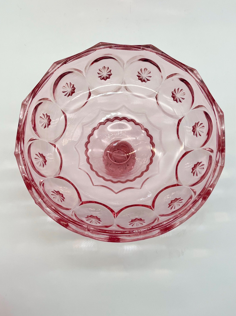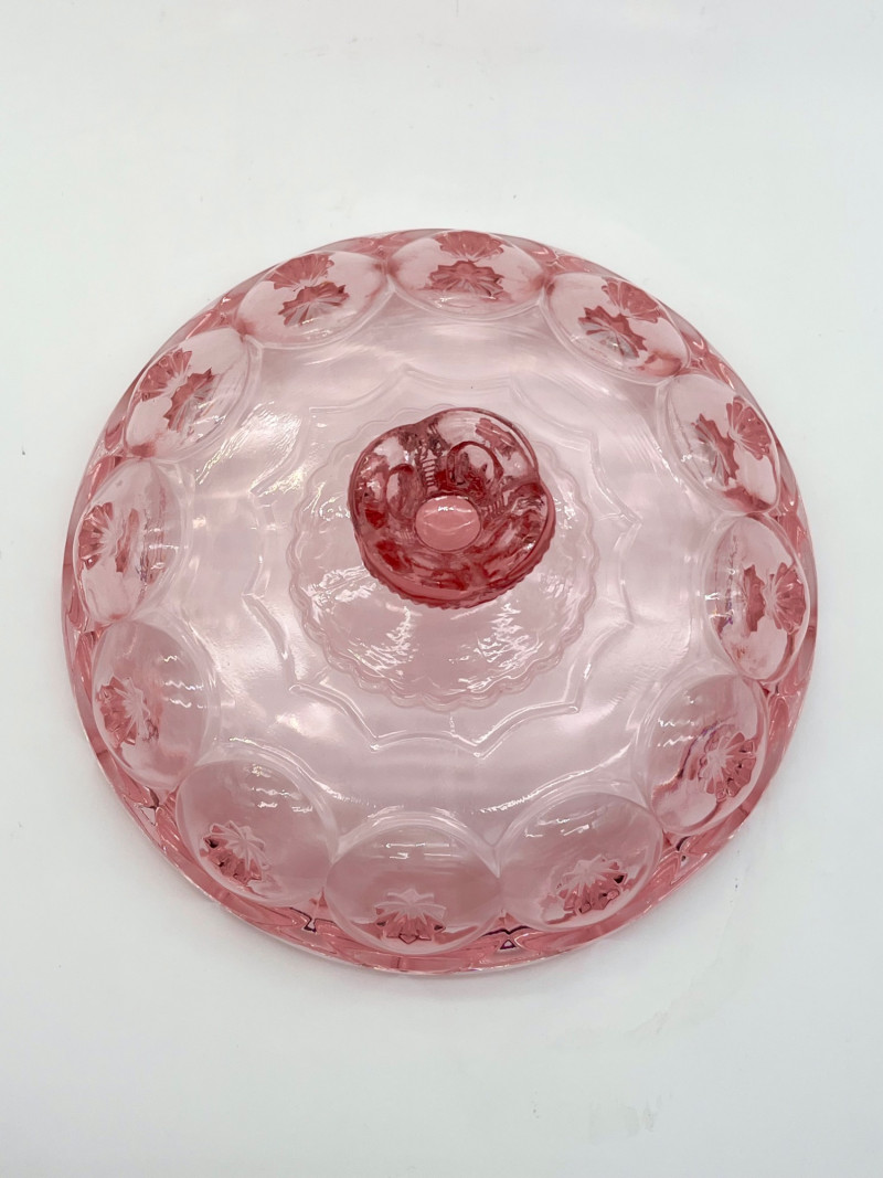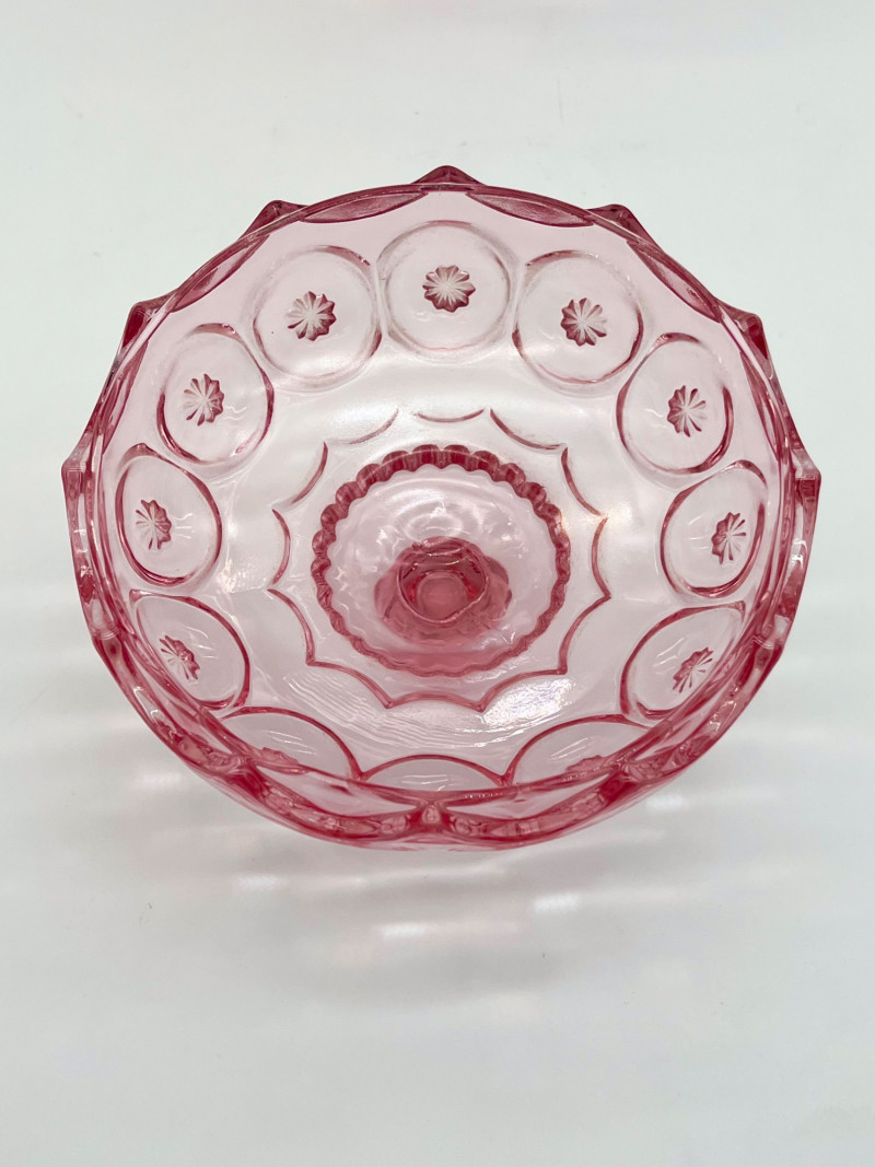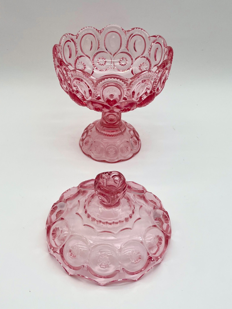 Vintage Pink Moon and Star Glass 6 Piece Lot Feat. Large Lidded Dish Not many glass patterns are as iconic as the Moon and Star pattern! This lot includes: All pieces look to be in very good condition with minimal wear.