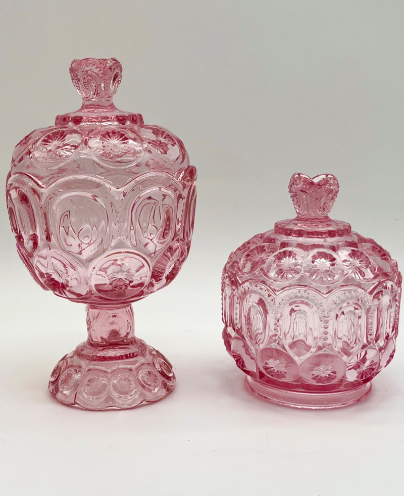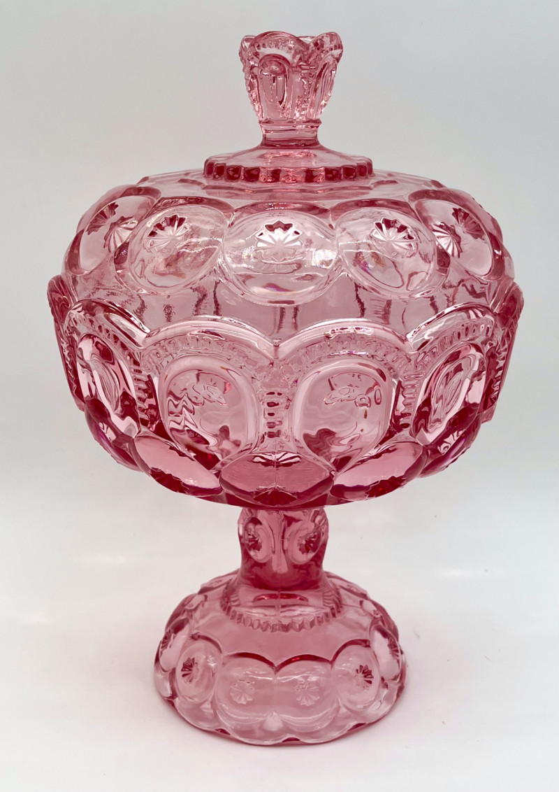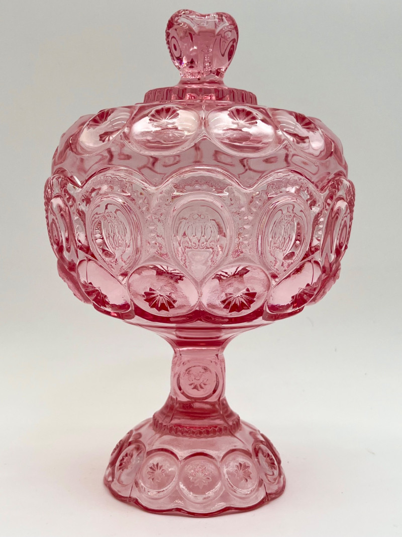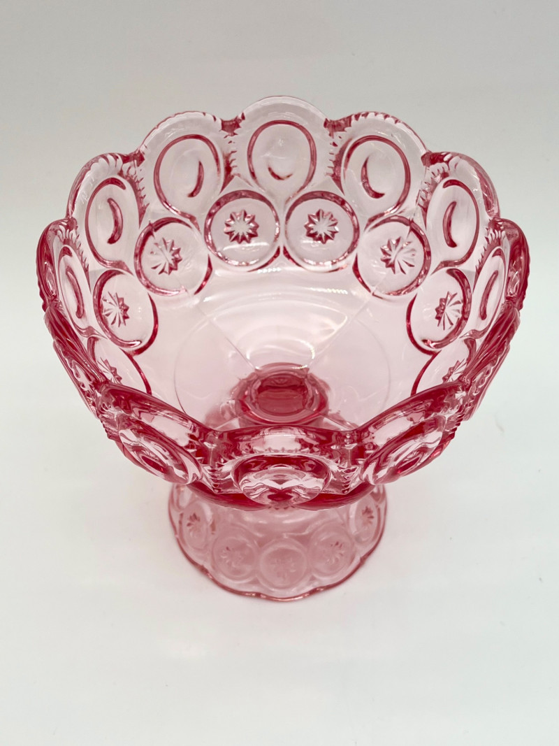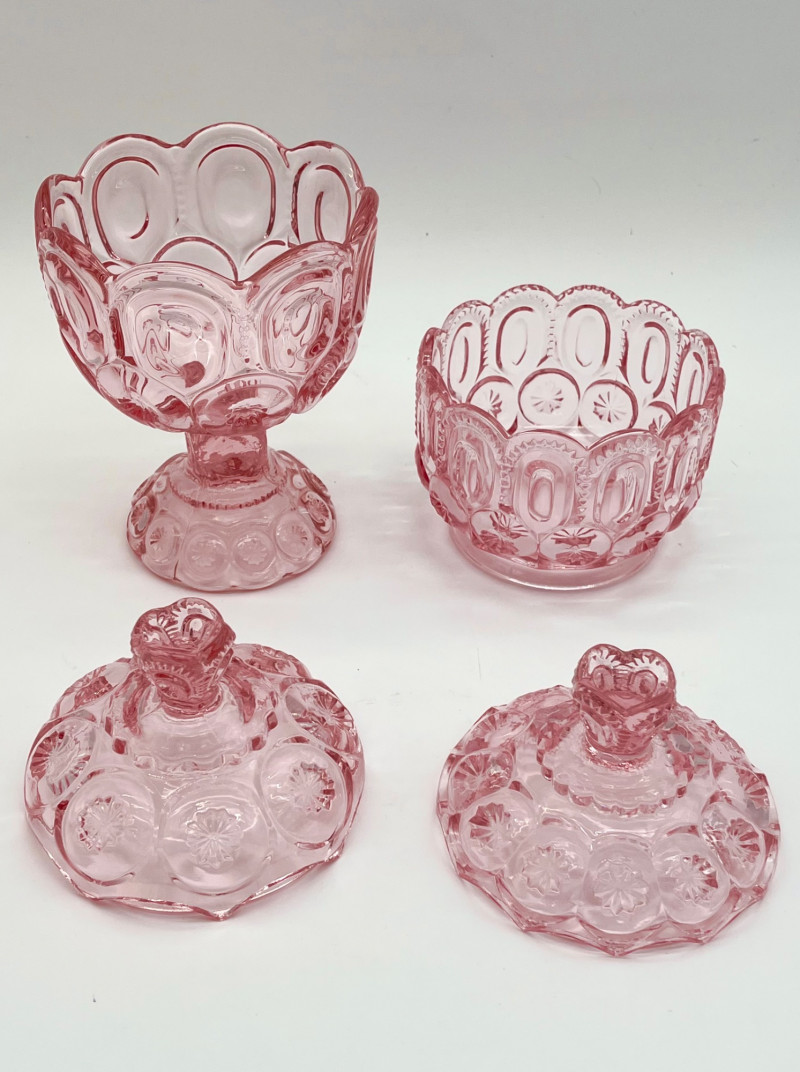 Vintage Pink Moon and Star Glass 6 Piece Lot Feat. Large Lidded Dish Not many glass patterns are as iconic as the Moon and Star pattern! This lot includes: All pieces look to be in very good condition with minimal wear.