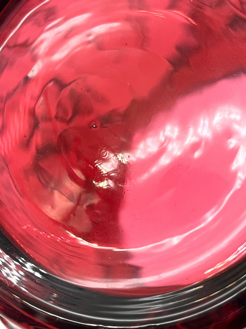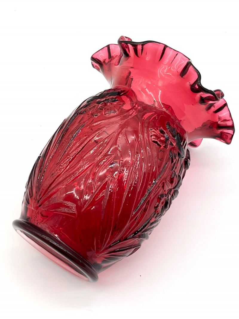 Fenton Deep Cranberry Daffodil Double Crimp Ruffle Top 8" Vase In very nice condition with no cracks or chips.