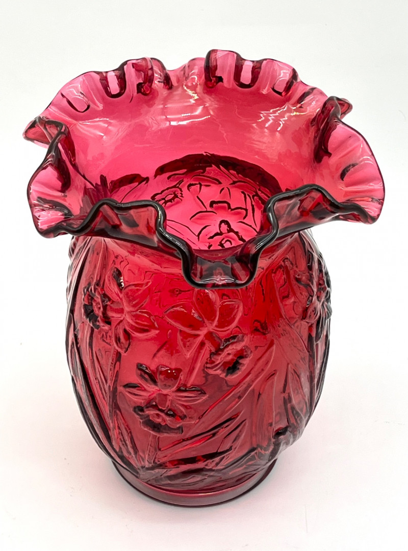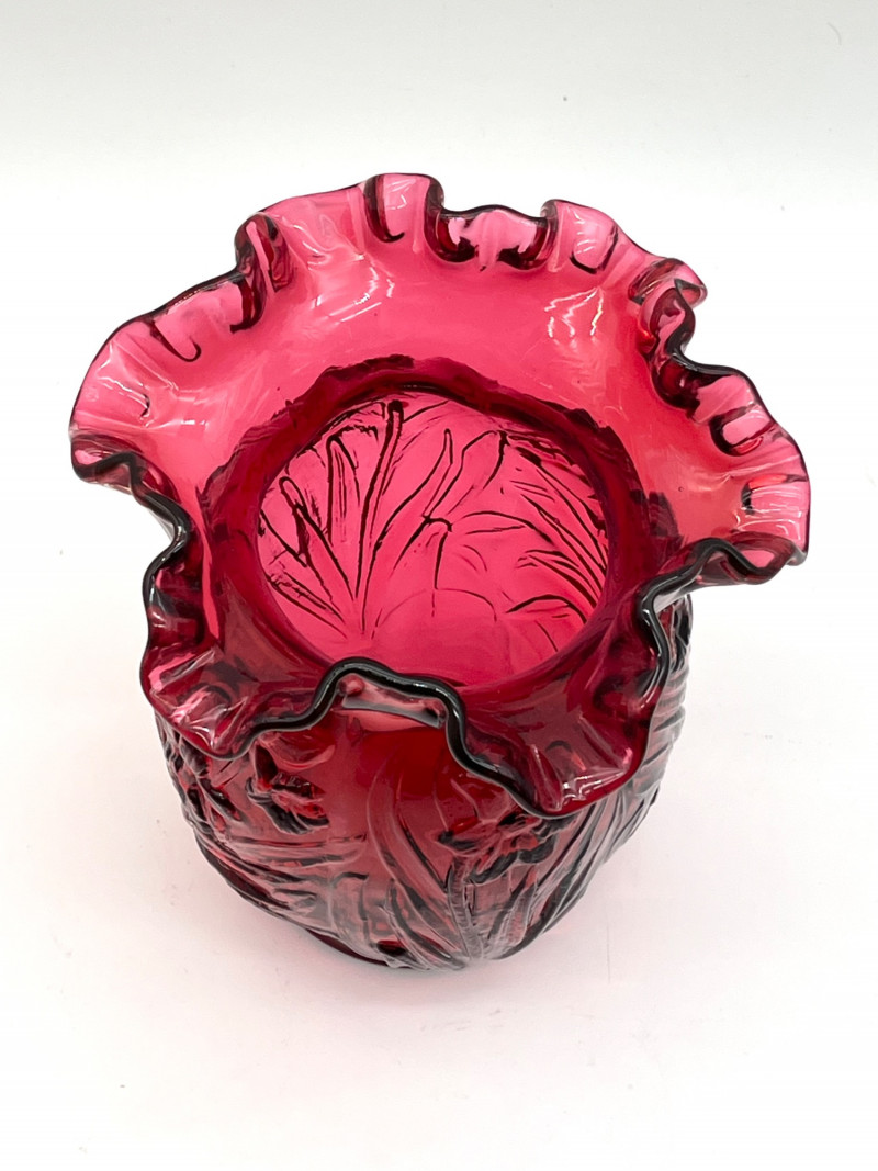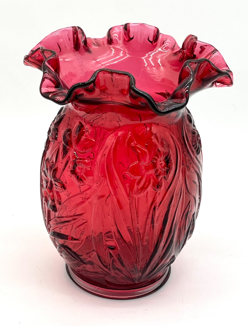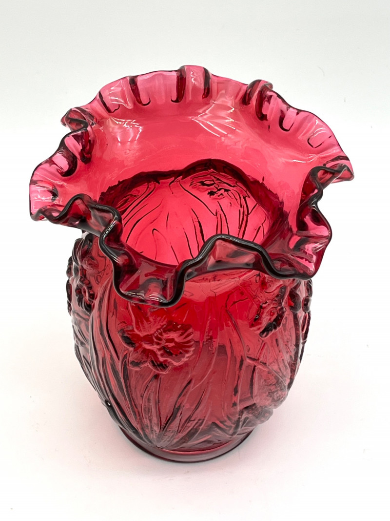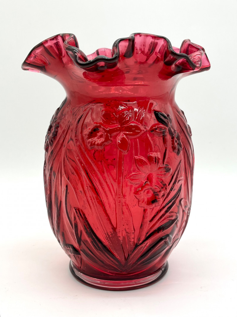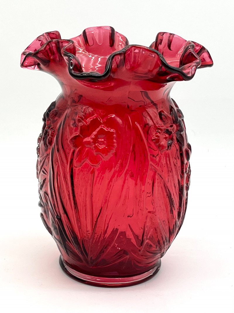 Lot # 29 - Fenton Deep Cranberry Daffodil Double Crimp Ruffle Top 8" Vase