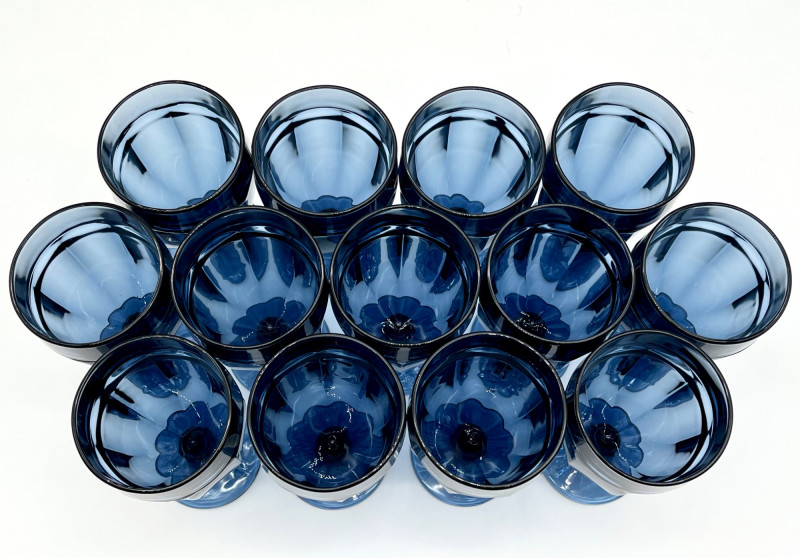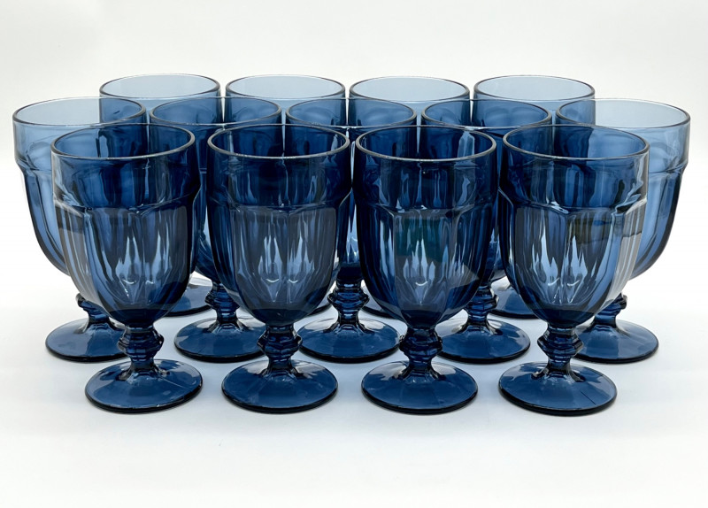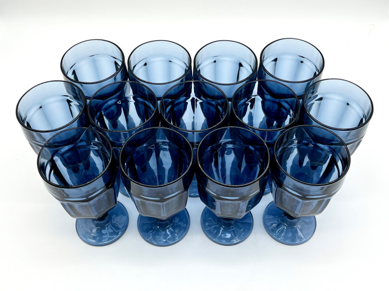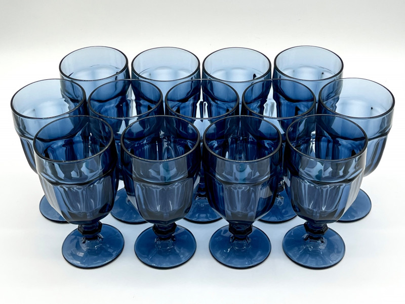 Lot # 6 - Libbey Duratuff Gibraltar Dusky Blue Iced Tea Glass 13 Piece Set