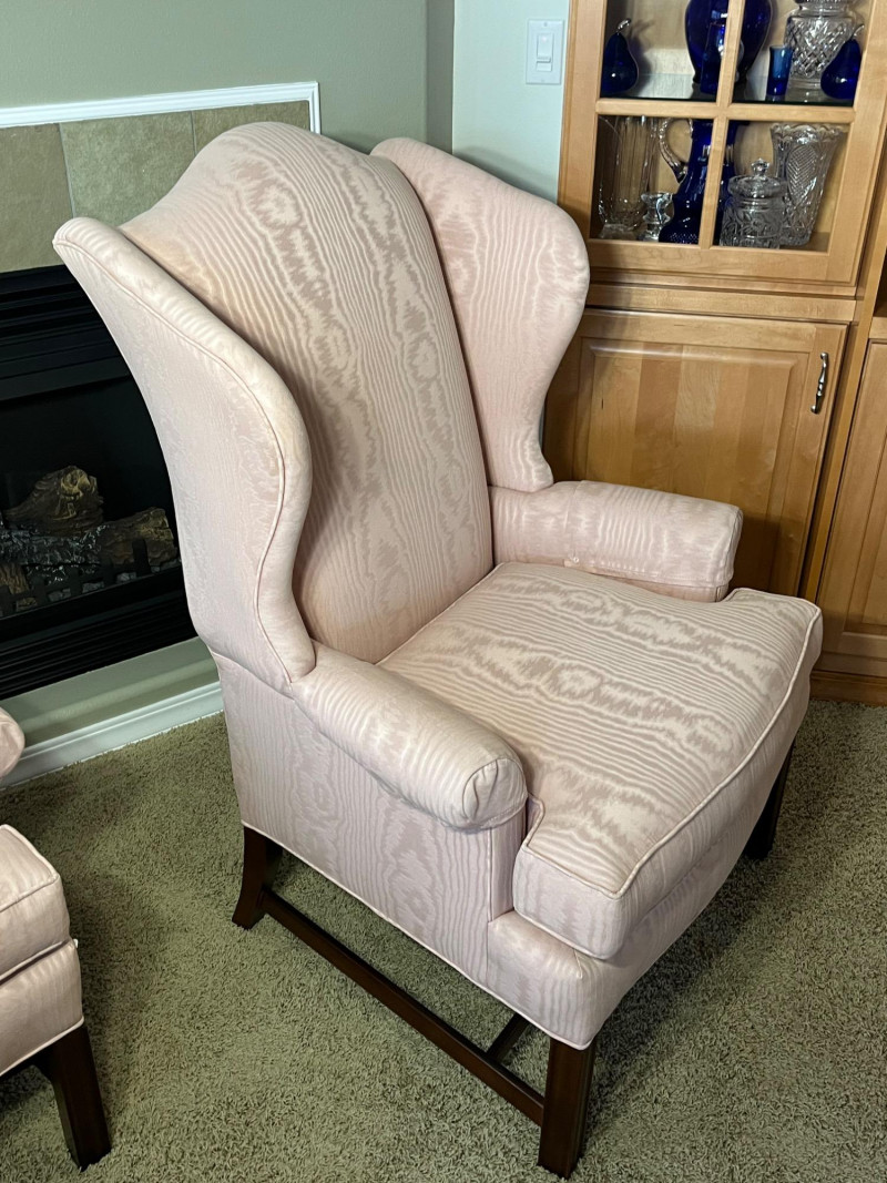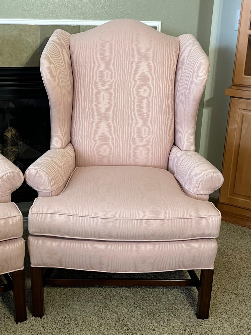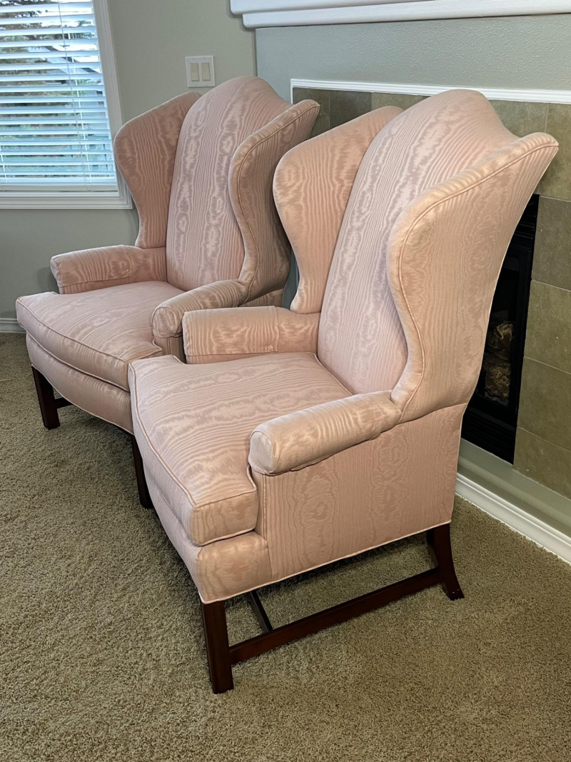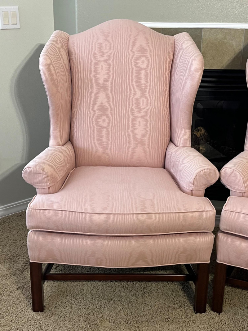 Lot # 8 - Pair of Matching Pink Wingback Chairs