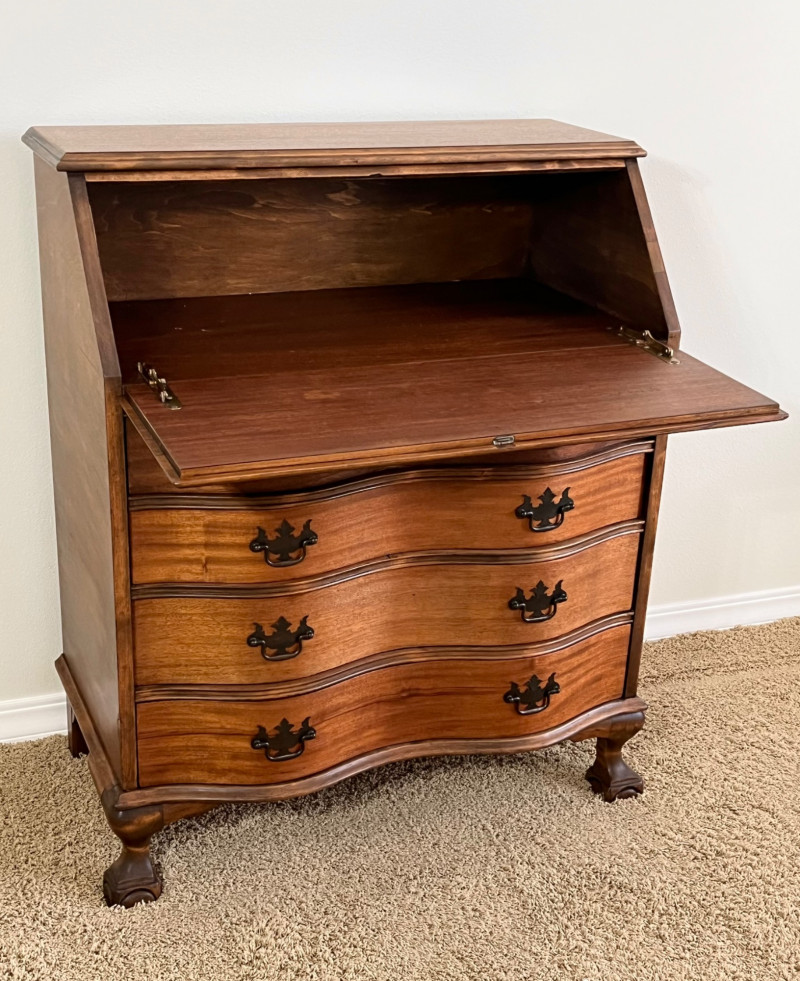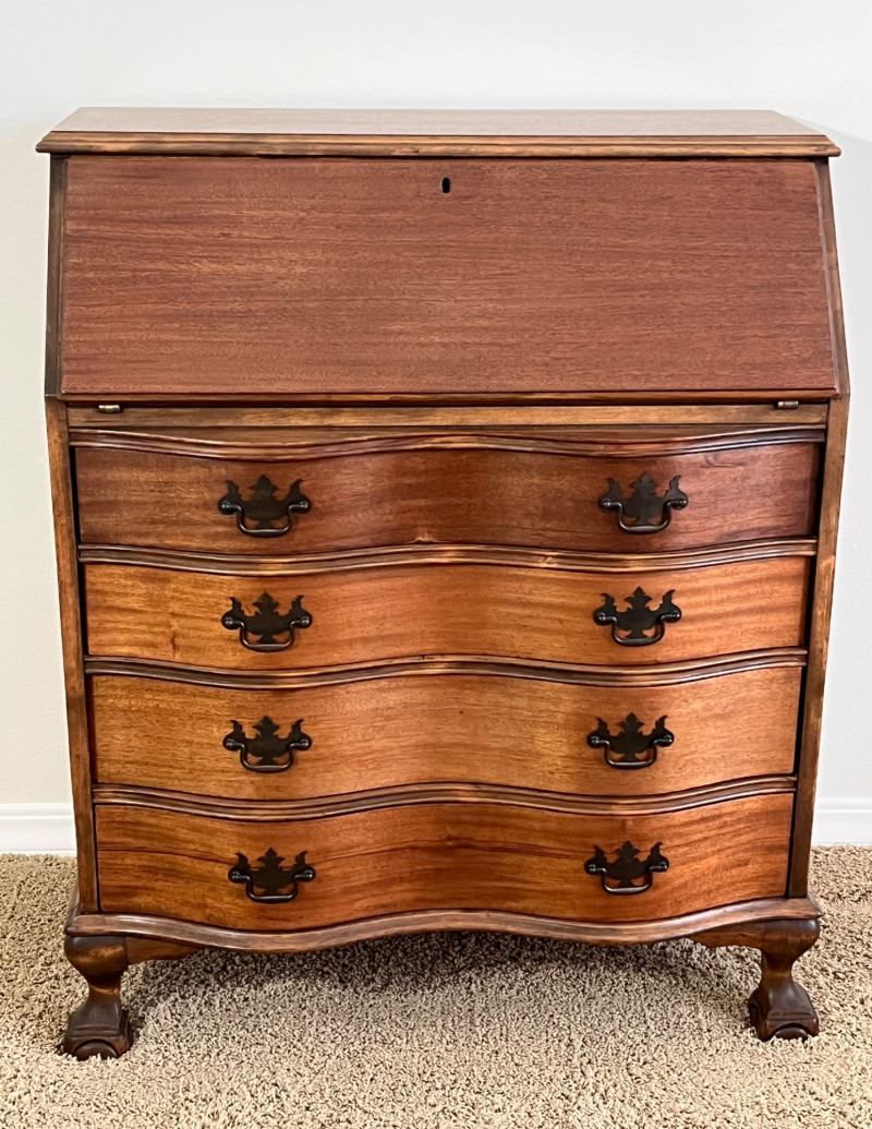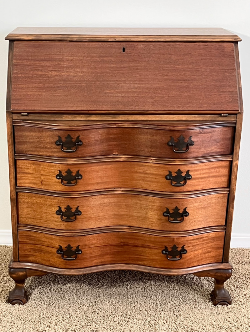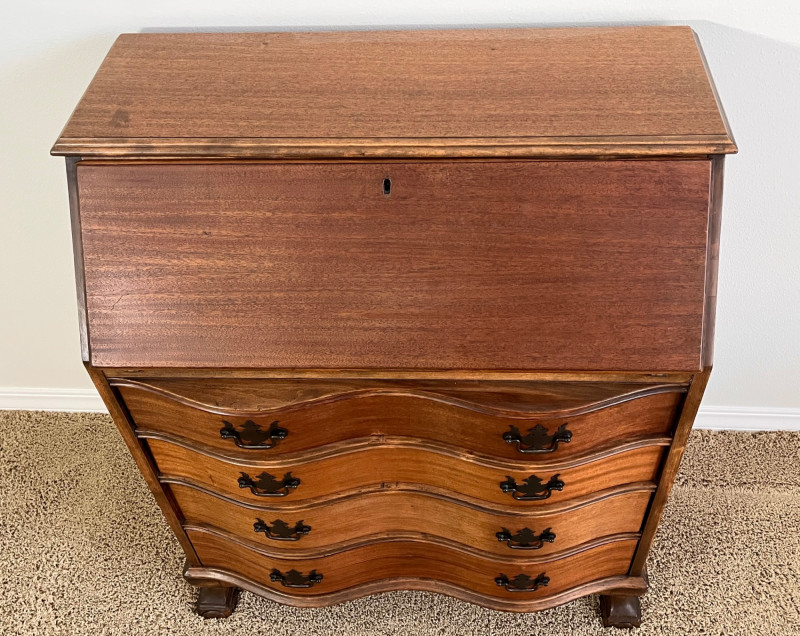 Lot # 12 - Antique Drop Front Secretary Desk with Ball and Claw Feet