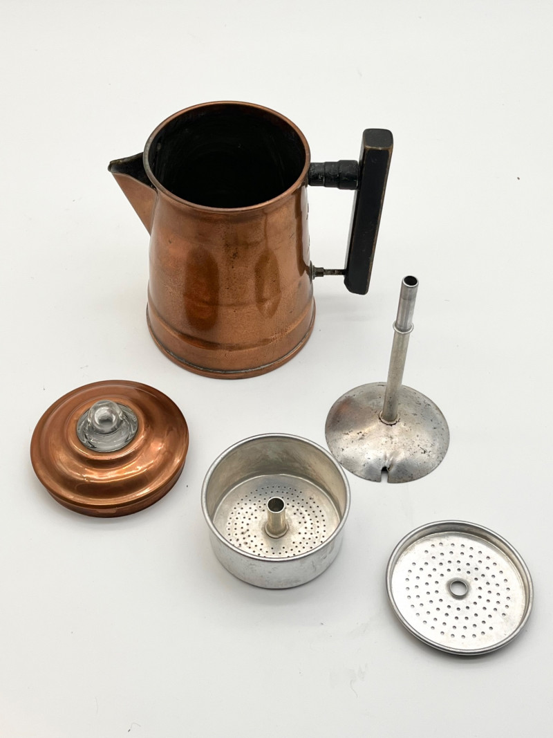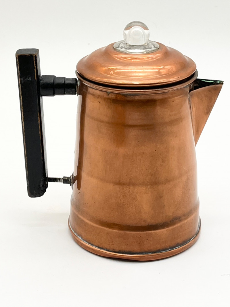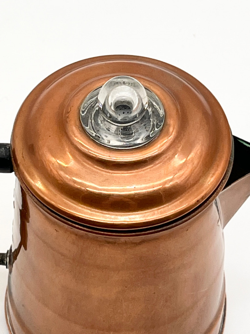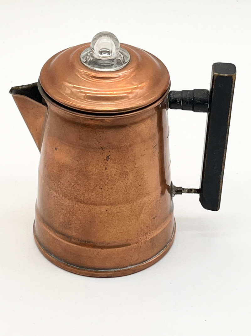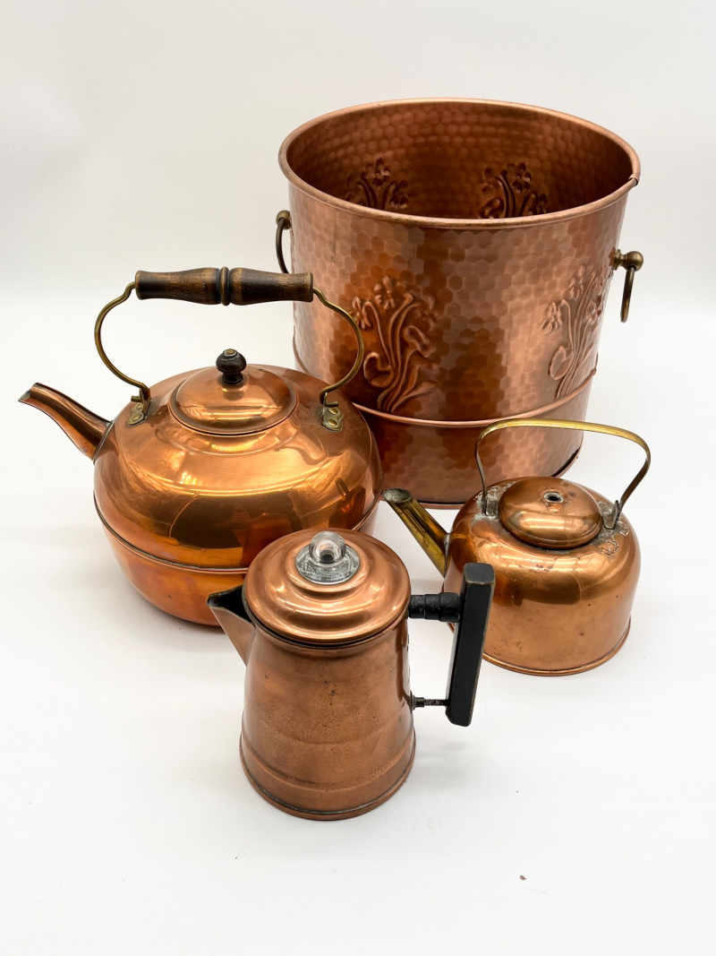Vintage Copper Lot Featuring Revere Ware Teapot For perspective, the bucket is 10 1/2" wide and 9 1/4" tall. I believe these are all copper plated items, not solid copper. The percolator does have all the pieces including the glass knob for the lid.