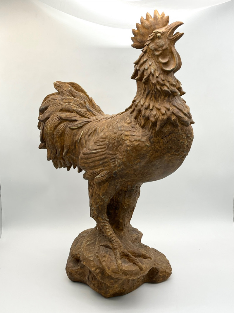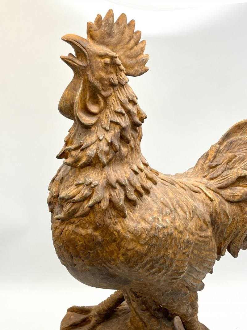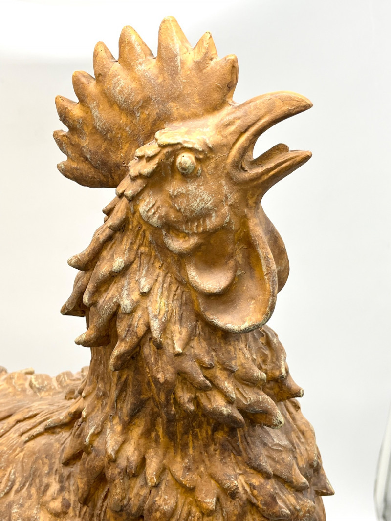 Large 24" Tall Rustic Styled Resin Rooster Statue This handsome guy stands at 24" tall and because he is resin, he is lightweight but sturdy. He is in like-new condition.