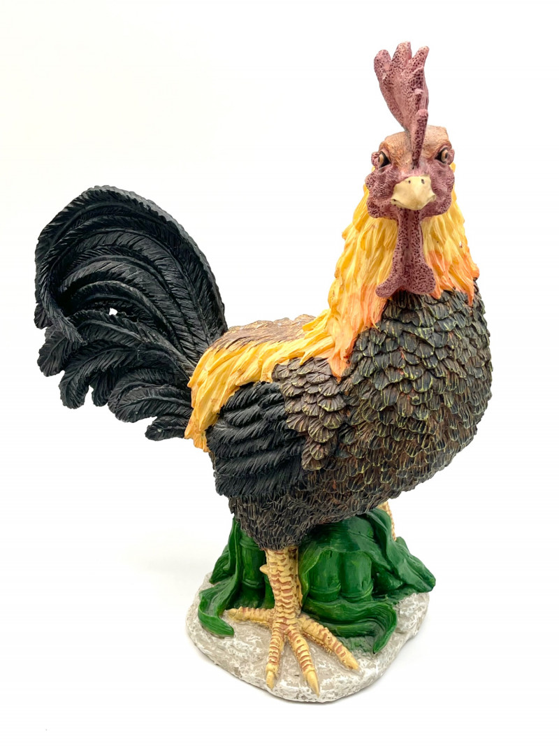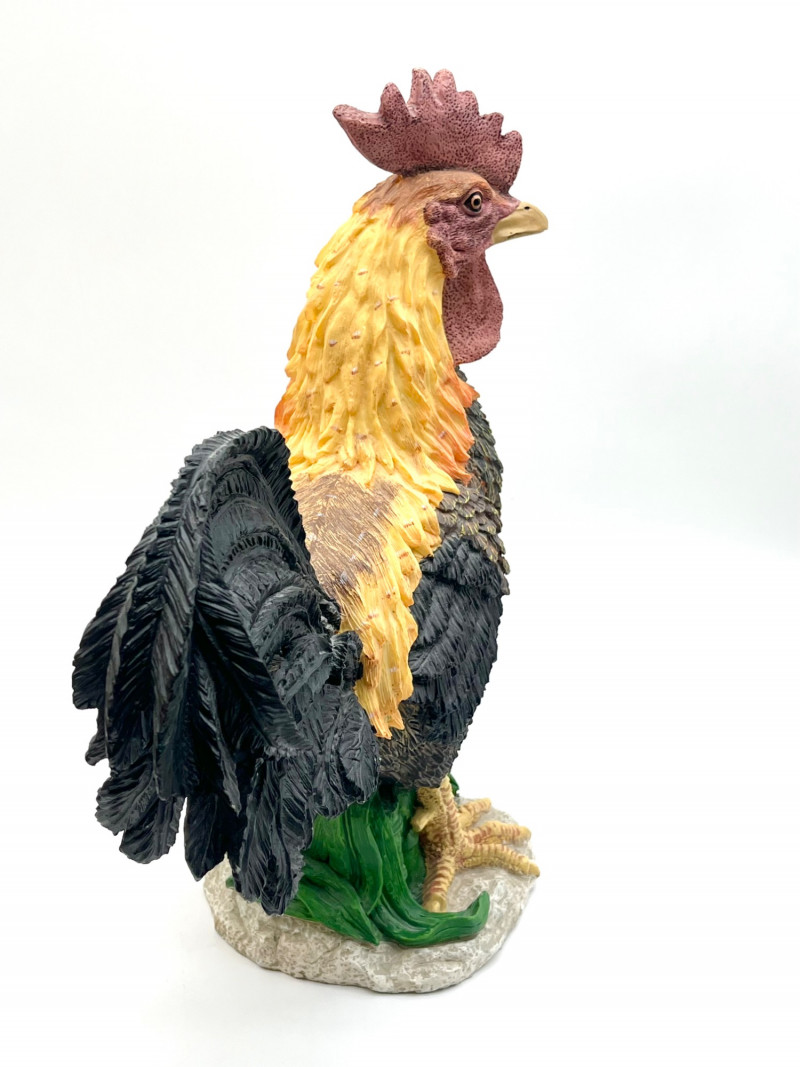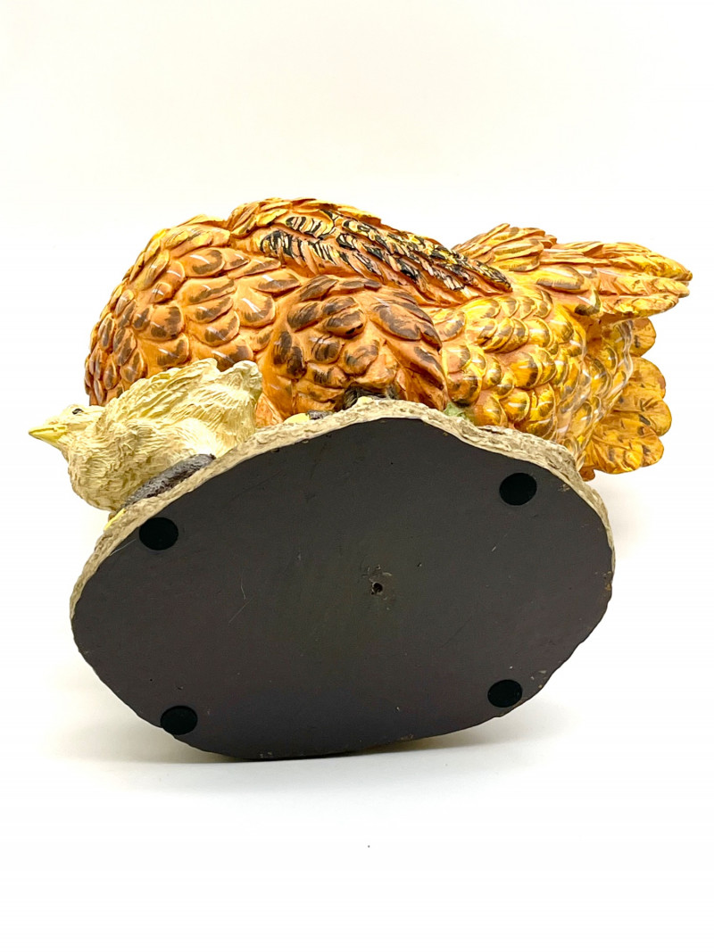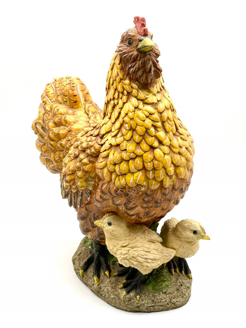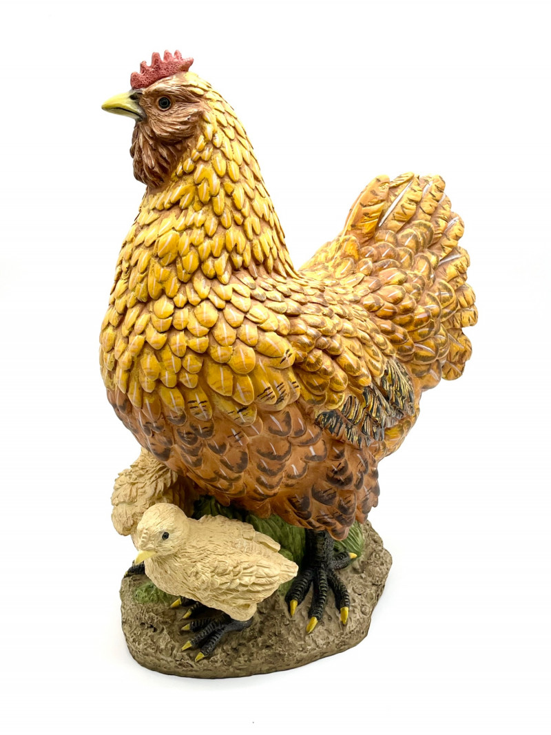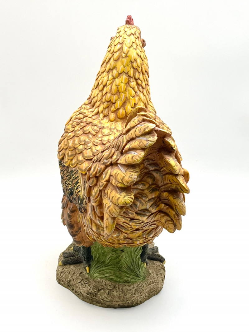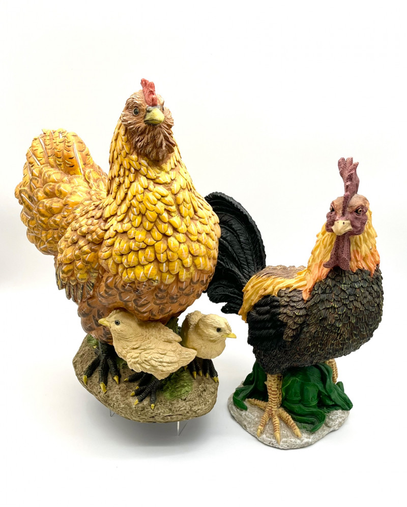 Rooster and a Hen with Her Chicks These are not a matching set but they look like they belong together! The rooster is 14" tall and the hen is about 15" tall. They are both is very good condition with little to no signs of wear.