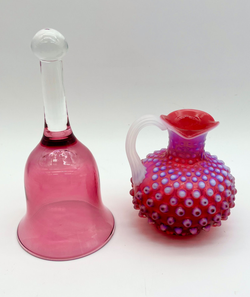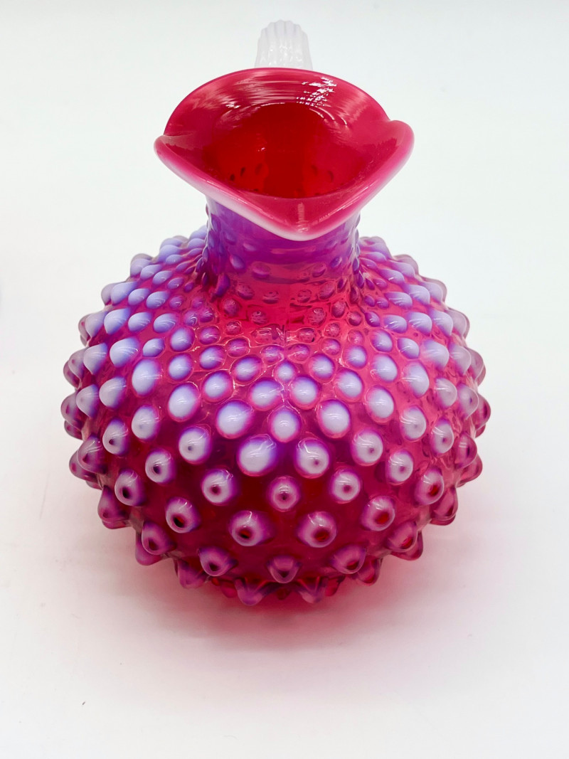 Lot # 28 - Cranberry Glass Lot Featuring Fenton Small Opalescent Hobnail Pitcher