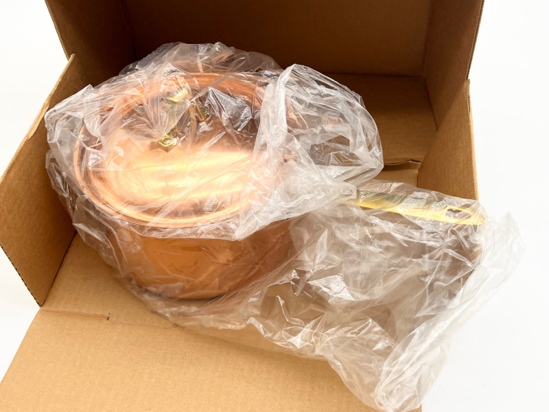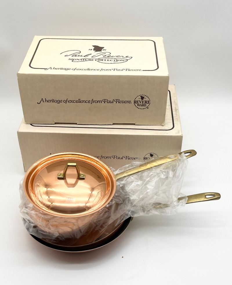 Lot # 36 - Copper Revere Ware 2 Skillets and 2 Sauce Pans New Old Stock in Boxes