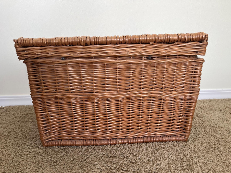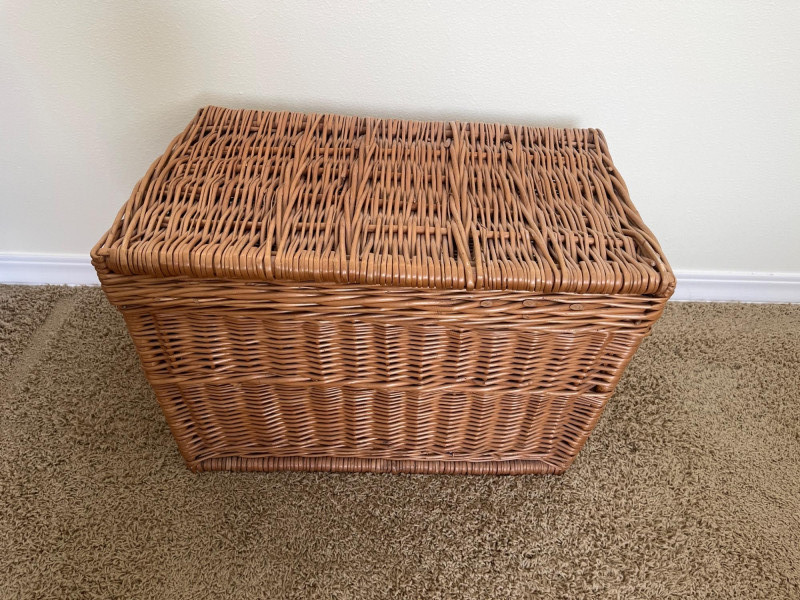 Wicker Chest Measures 15" x 24" x 15" and is in good condition.