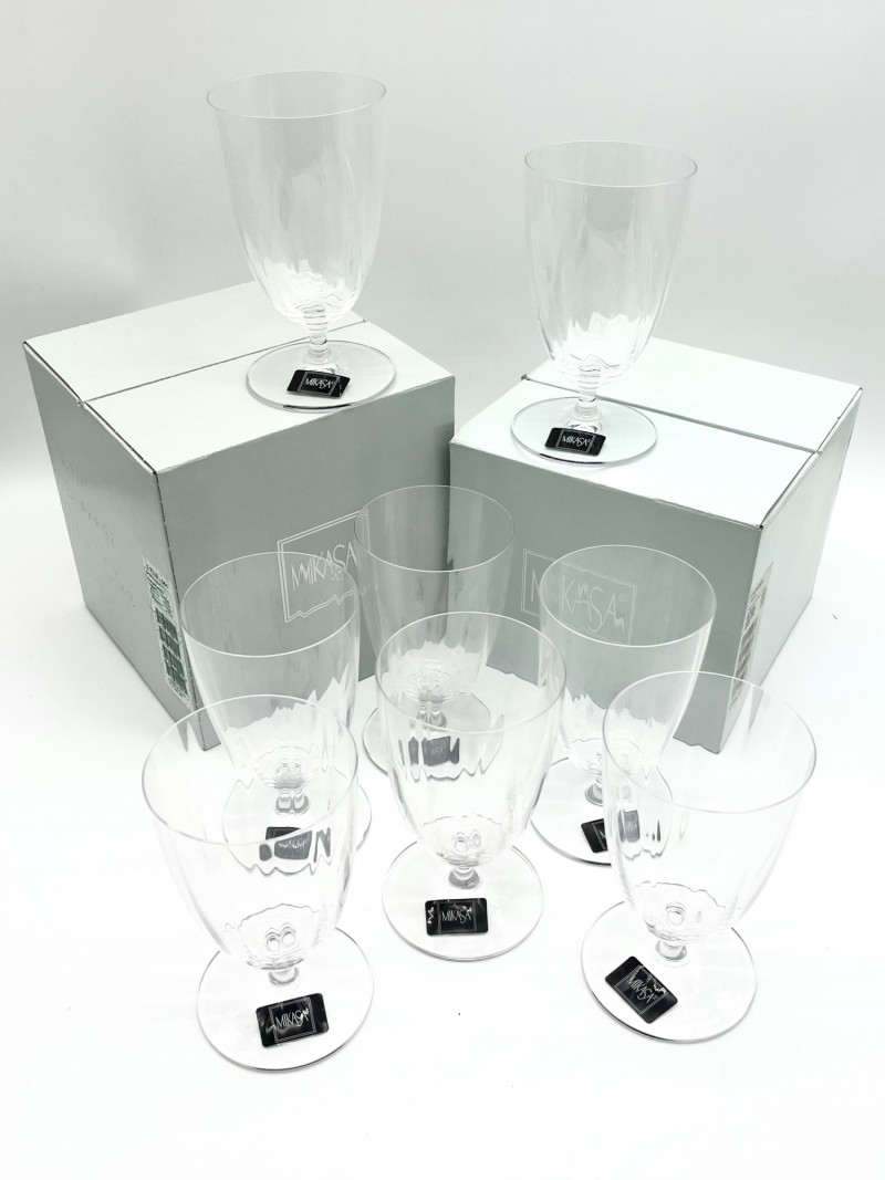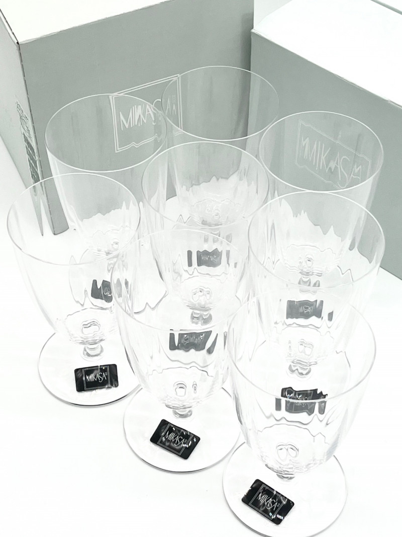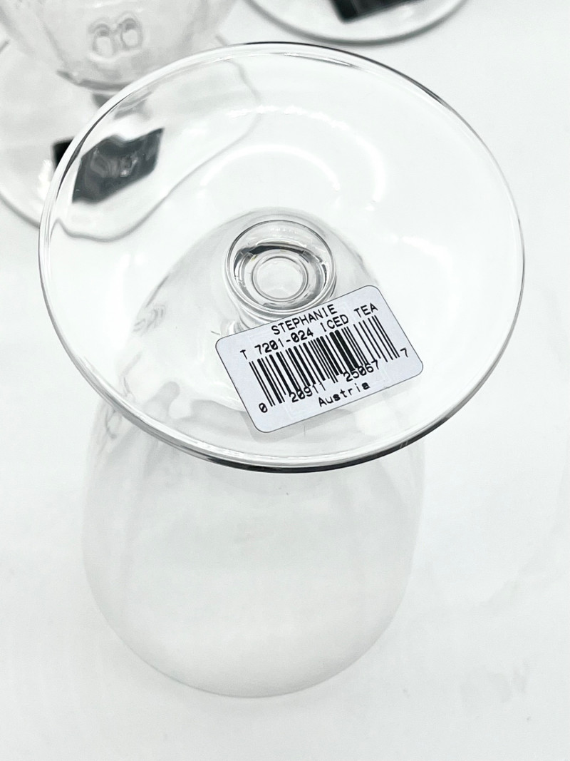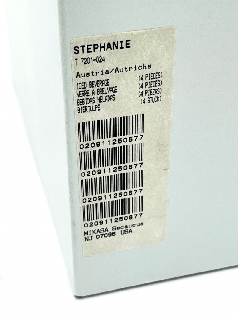 Set of 8 Mikasa Stephanie Pattern Crystal Iced Tea Glasses New in Box These are new in their boxes with their original UPC stickers still attached.