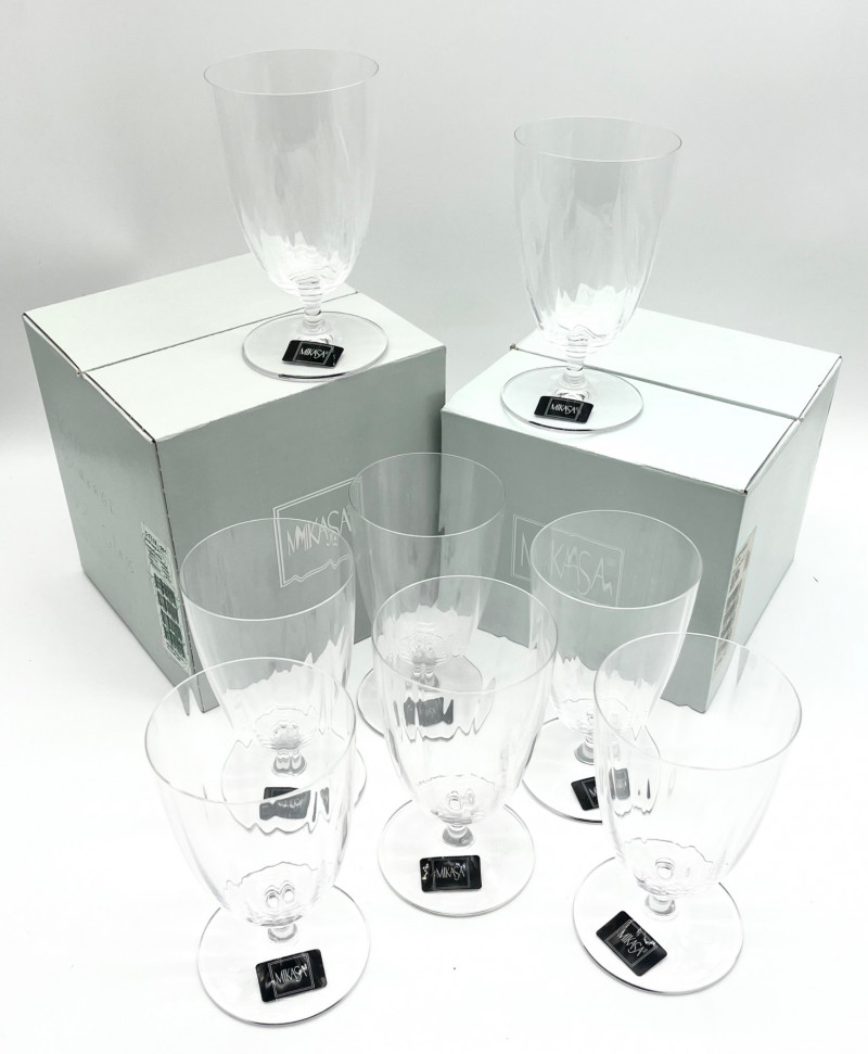 Lot # 74 - Set of 8 Mikasa Stephanie Pattern Crystal Iced Tea Glasses New in Box