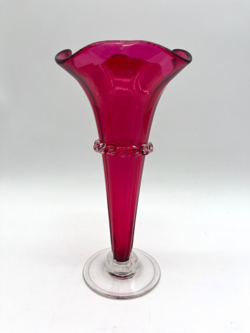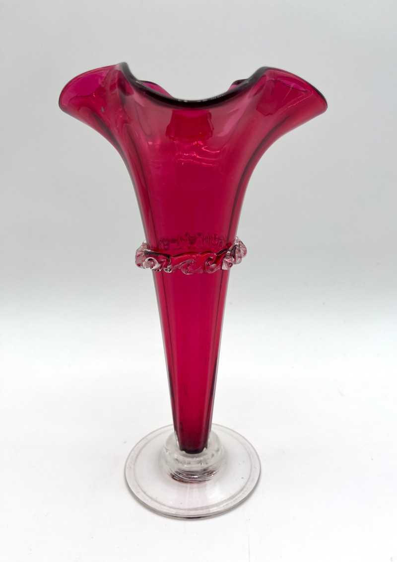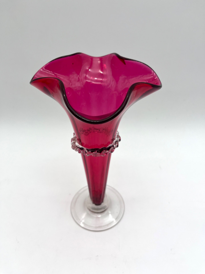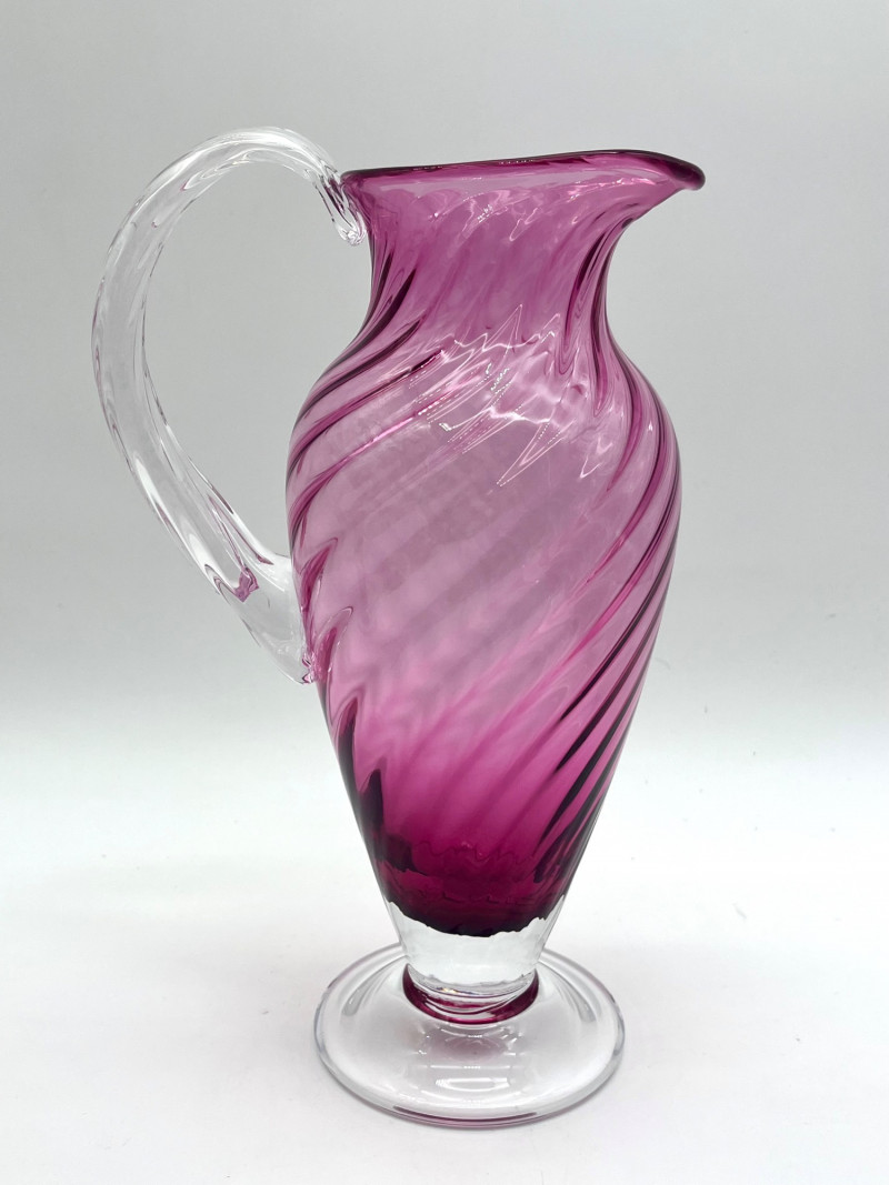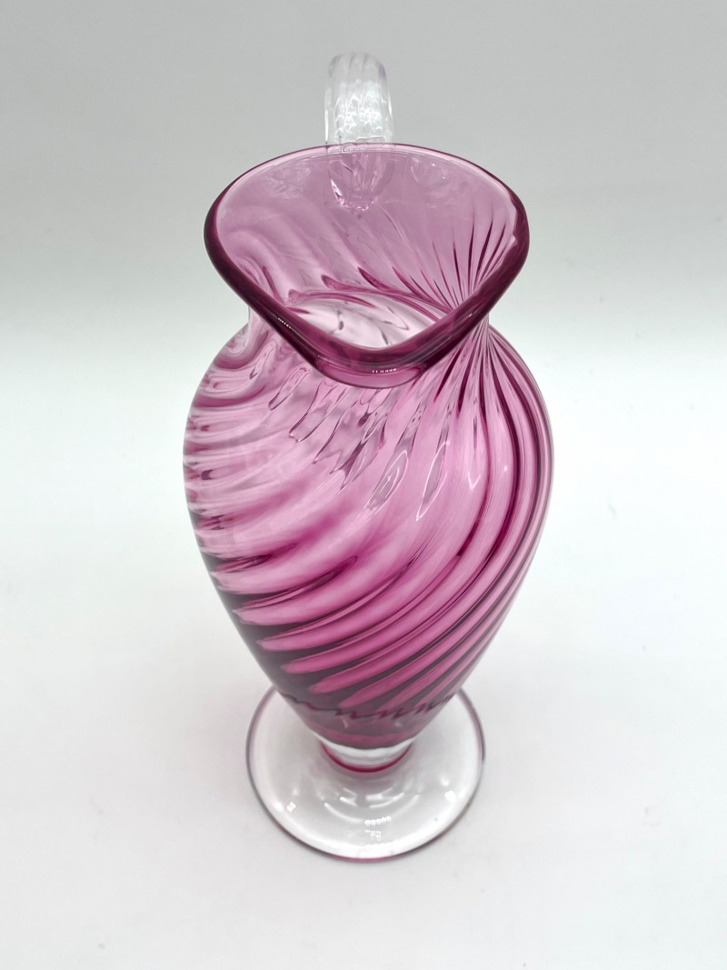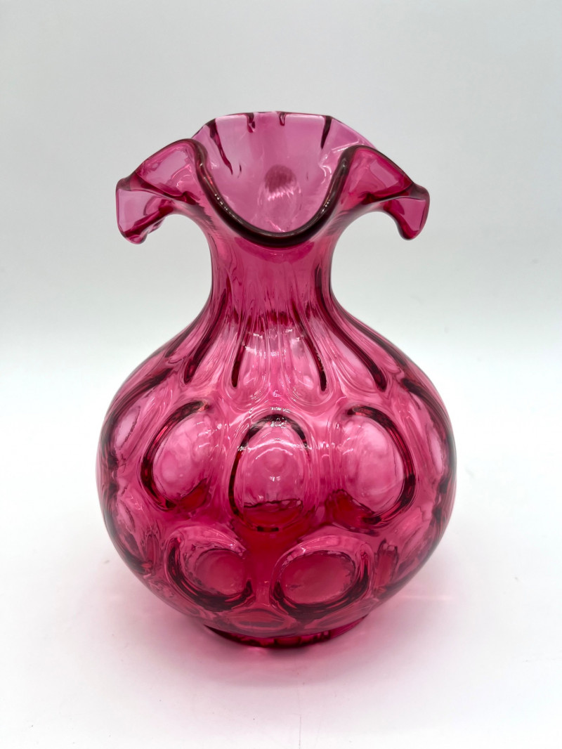 Cranberry Glass Lot Featuring Multiple Fenton Pieces The tallest piece, the footed pitcher, is 10 3/4" talland the smallest piece is 4 1/4" tall. All pieces are in good condition with no cracks or chips.