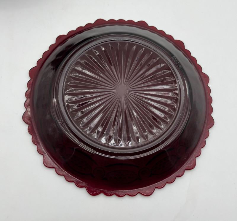 Lot # 84 - Cape Code Red Glass Plates, Wine Glasses and Bell by Avon