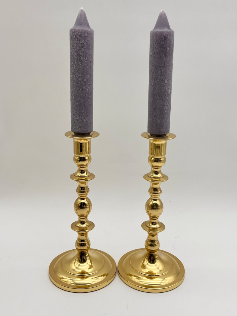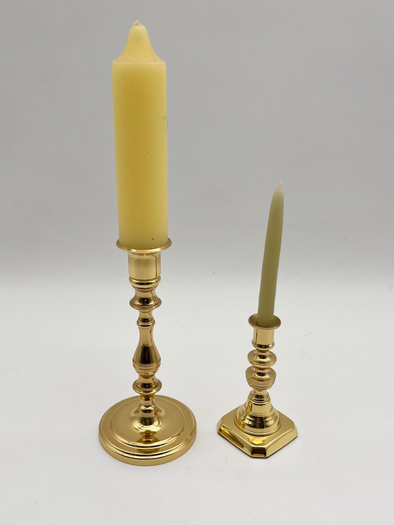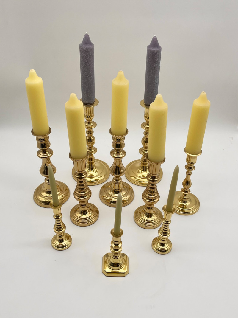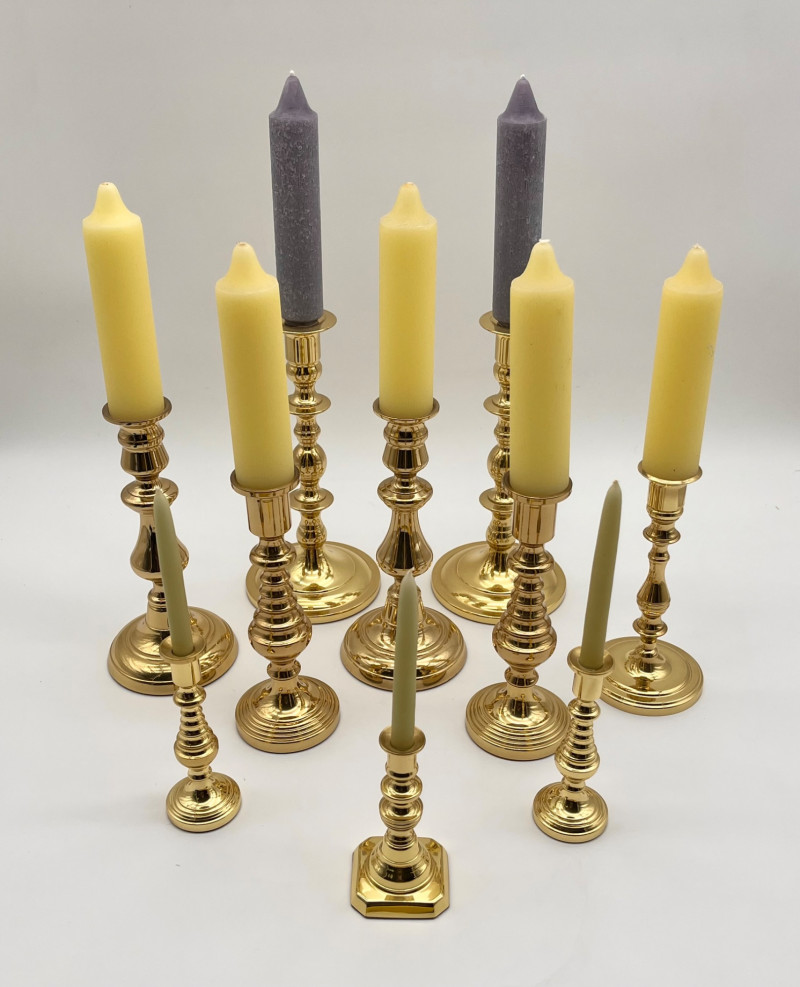 Set of 10 Baldwin Brass Candlestick Holders These range between 4" and 9" tall and are of various patterns. All are in very good condition with no dents or scratches.