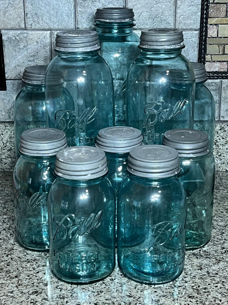 Ten Vintage Medium and Large Sized Ball Jars This set includes five 9" and five 7" jars, all with lids.